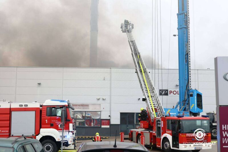 Die Mitarbeiter des Unternehmens konnten laut ersten Angaben rechtzeitig in Sicherheit gebracht werden. Die Polizei hat in den angrenzenden Siedlungen die Bewohner aufgefordert wegen der starken Rauchentwicklung die Fenster und Türen geschlossen zu halten. Mittlerweile hat sich die Rauchsäule nahezu aufgelöst.