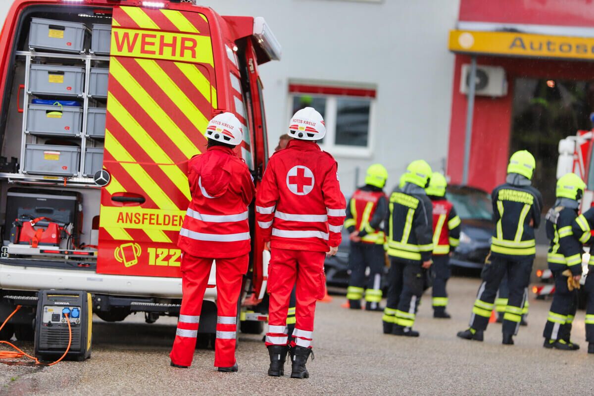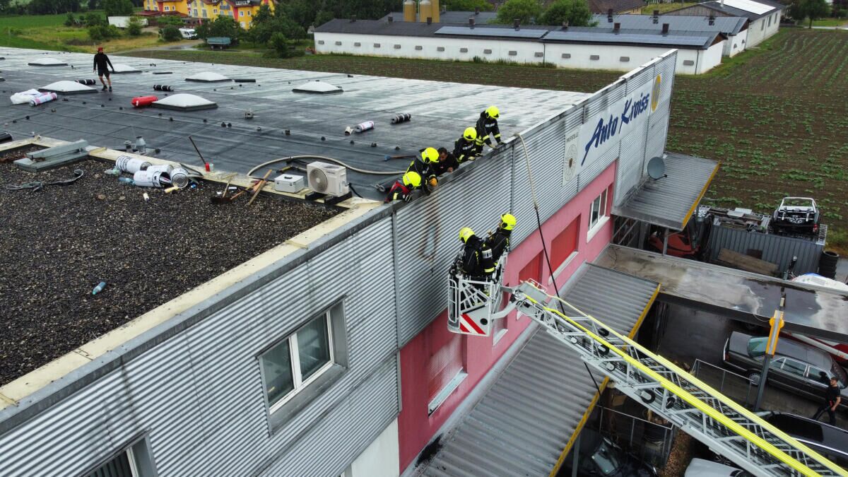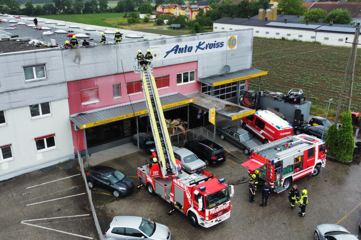 Vier Feuerwehren bei Brand am Dach einer Autowerkstatt in Ansfelden im Einsatz