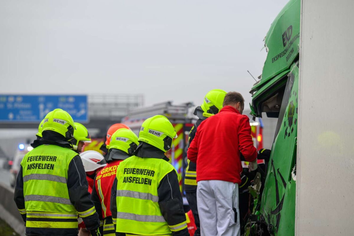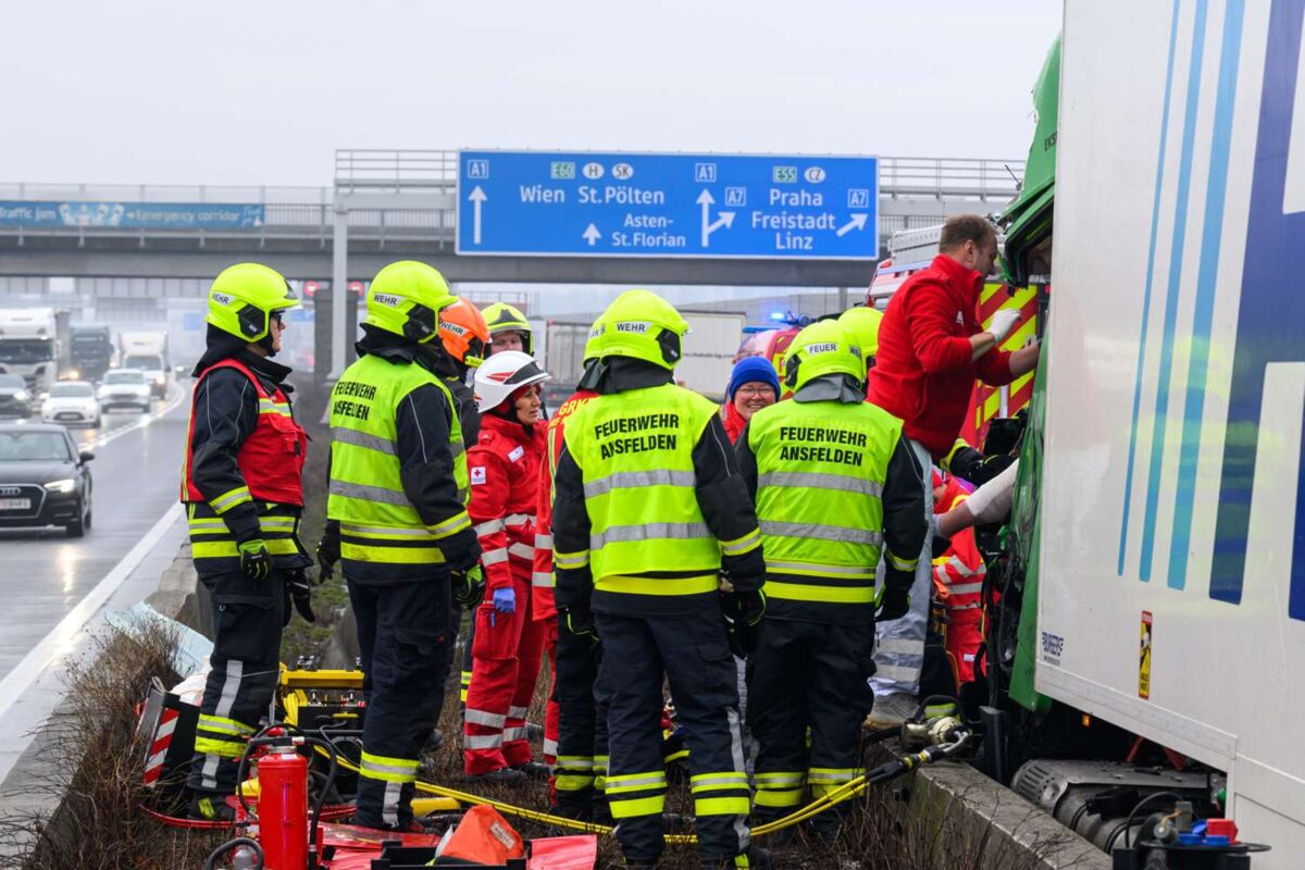 Der Mann fuhr in Fahrtrichtung Wien auf einen anderen Lastwagen auf, er konnte von der Feuerwehr schnell befreit werden und wurde ins Krankenhaus gebracht. Im Einsatz standen die Feuerwehren Freindorf und Ansfelden sowie die Polizei, Rettung mit Notarzt und Mitarbeiter der Asfinag.