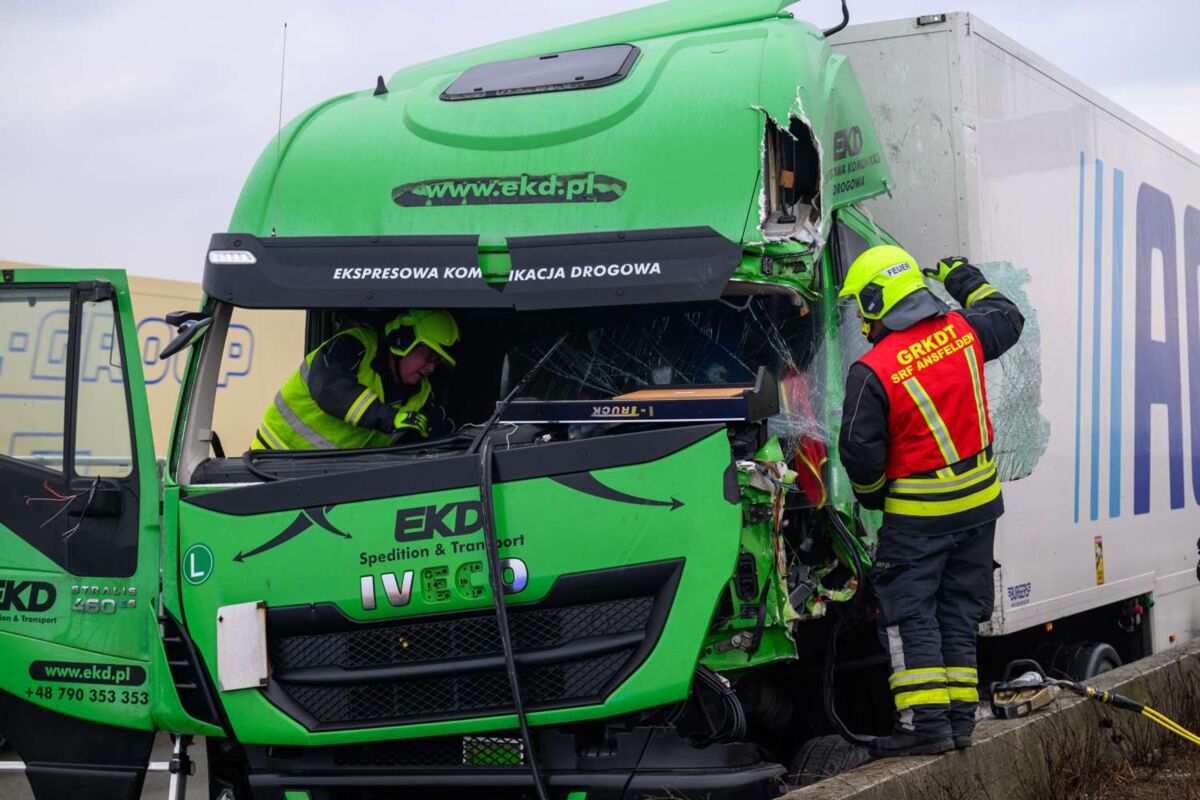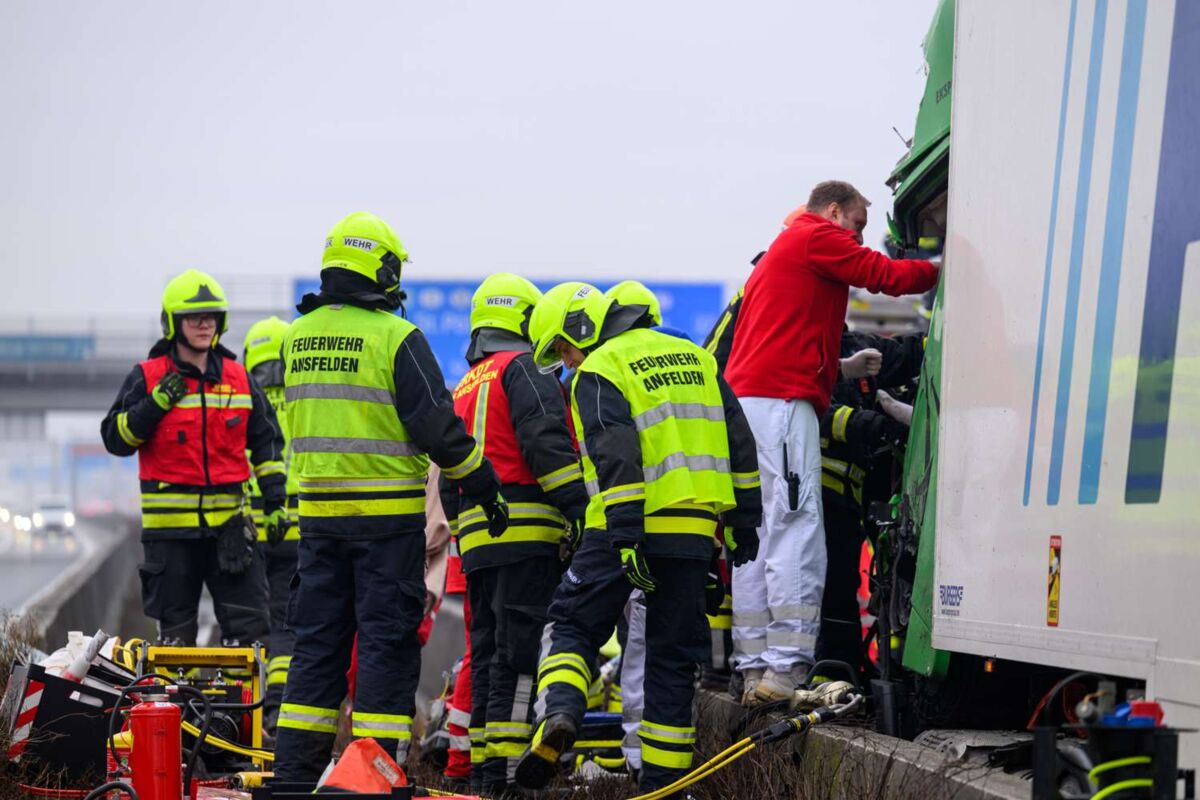ANSFELDEN/ TRAUN. Bei einem schweren Lkw-Unfall auf der A1 zwischen der Ausfahrt Traun und dem Knoten Linz ist Donnerstagvormittag ein Lastwagenfahrer in seinem Führerhaus eingeklemmt worden.