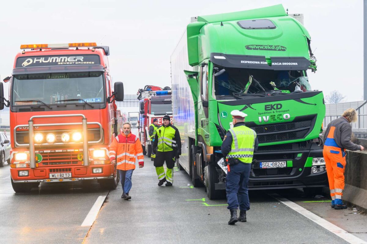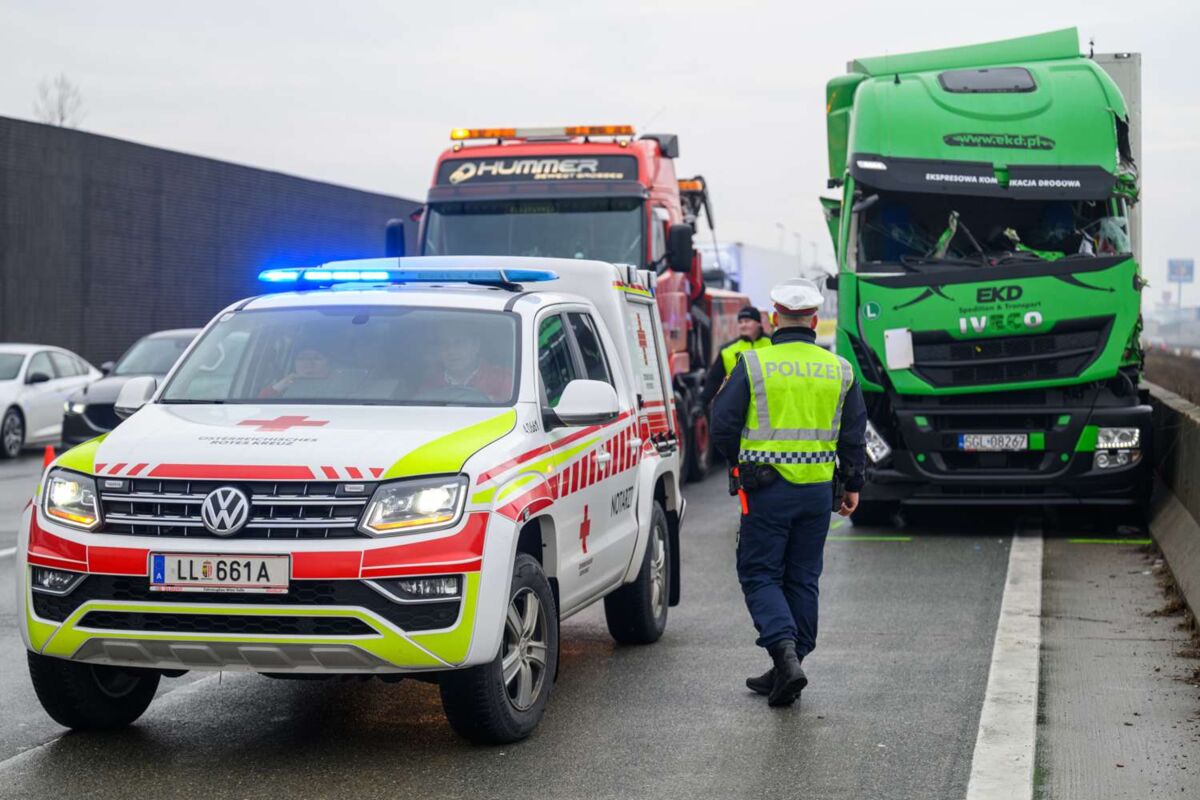 Schwerer Lkw-Unfall auf der A1 beim Knoten Linz: Fahrer in Führerhaus eingeklemmt