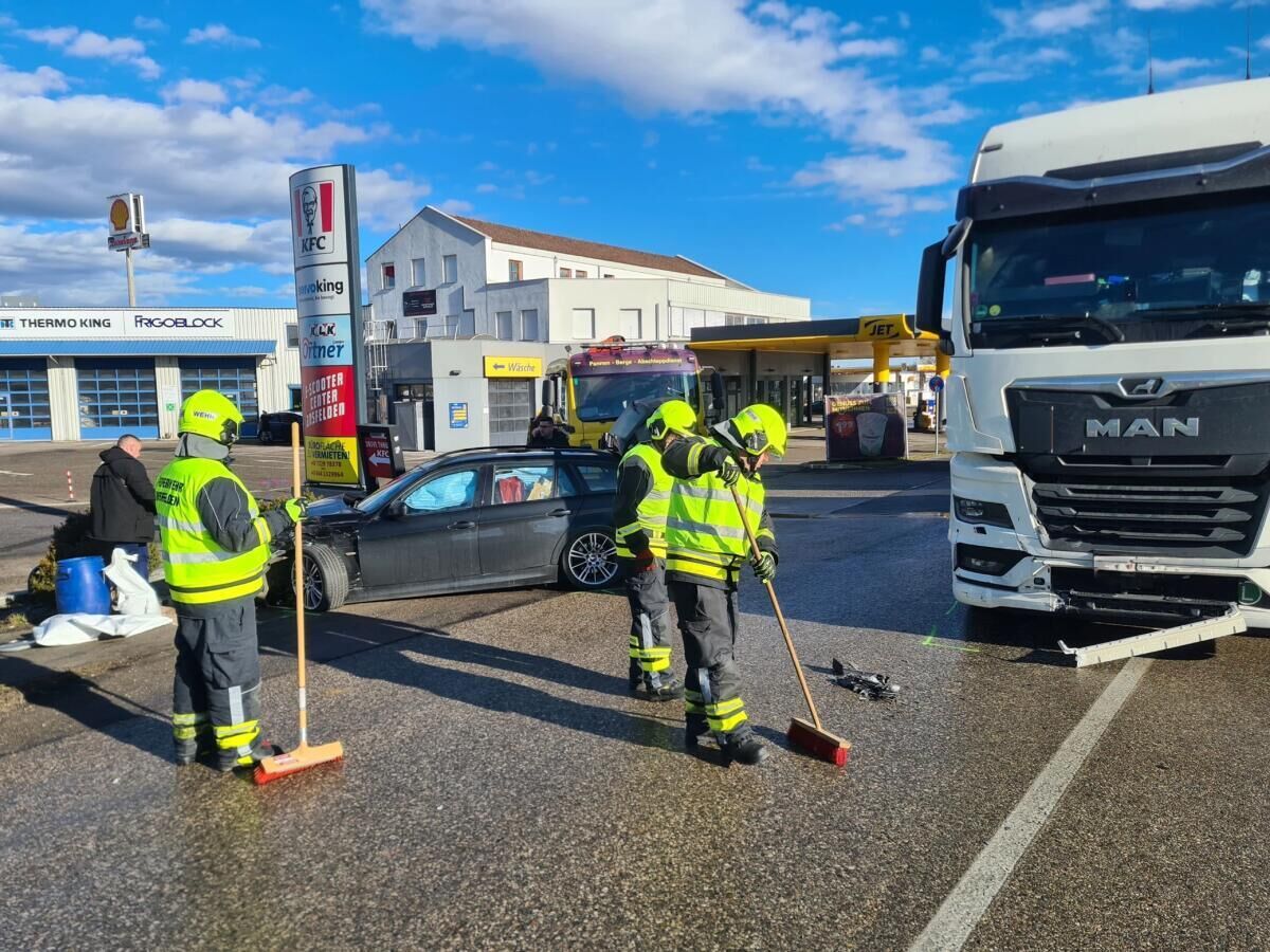 ANSFELDEN. Dienstagvormittag sind bei der Jet-Tankstelle in Ansfelden ein Auto und ein Lastwagen ineinander gekracht.