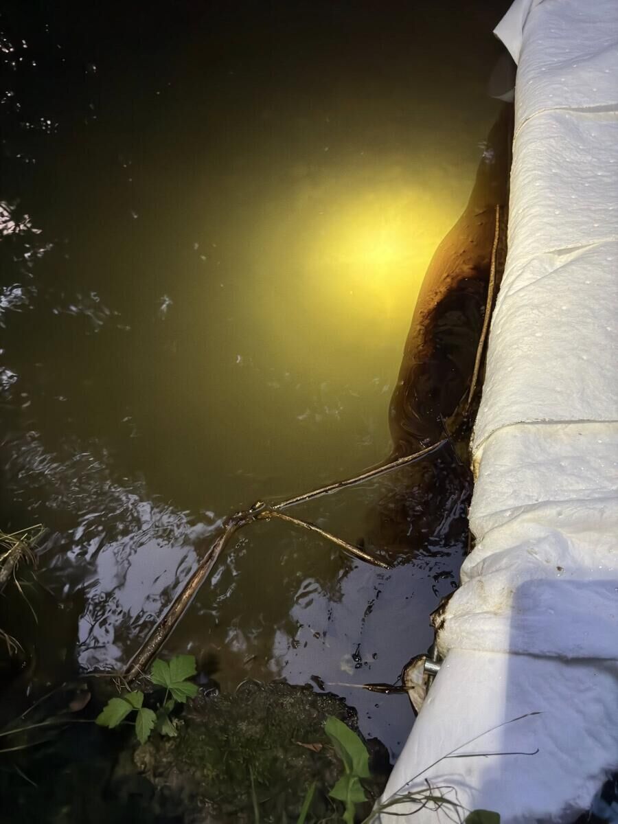 Die Feuerwehr stand Montagabend im Einsatz, um das Gewässer bestmöglich zu reinigen und eine weitere Ausbreitung zu verhindern.