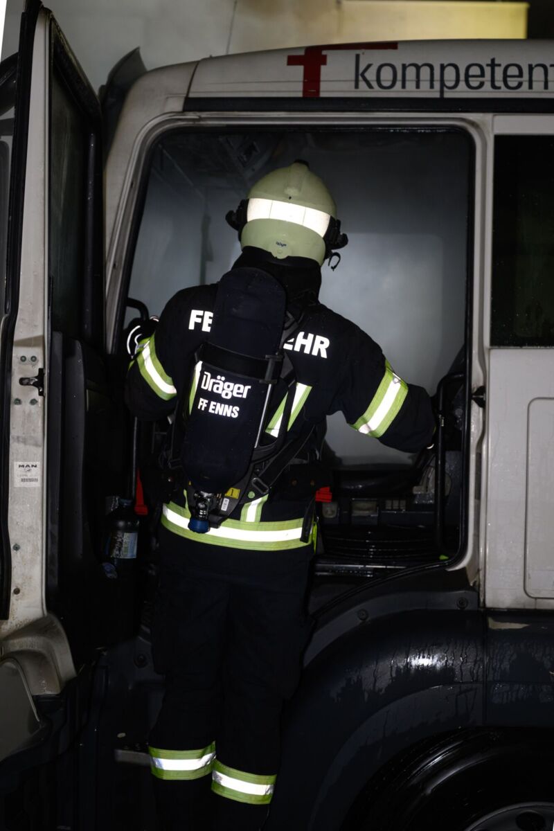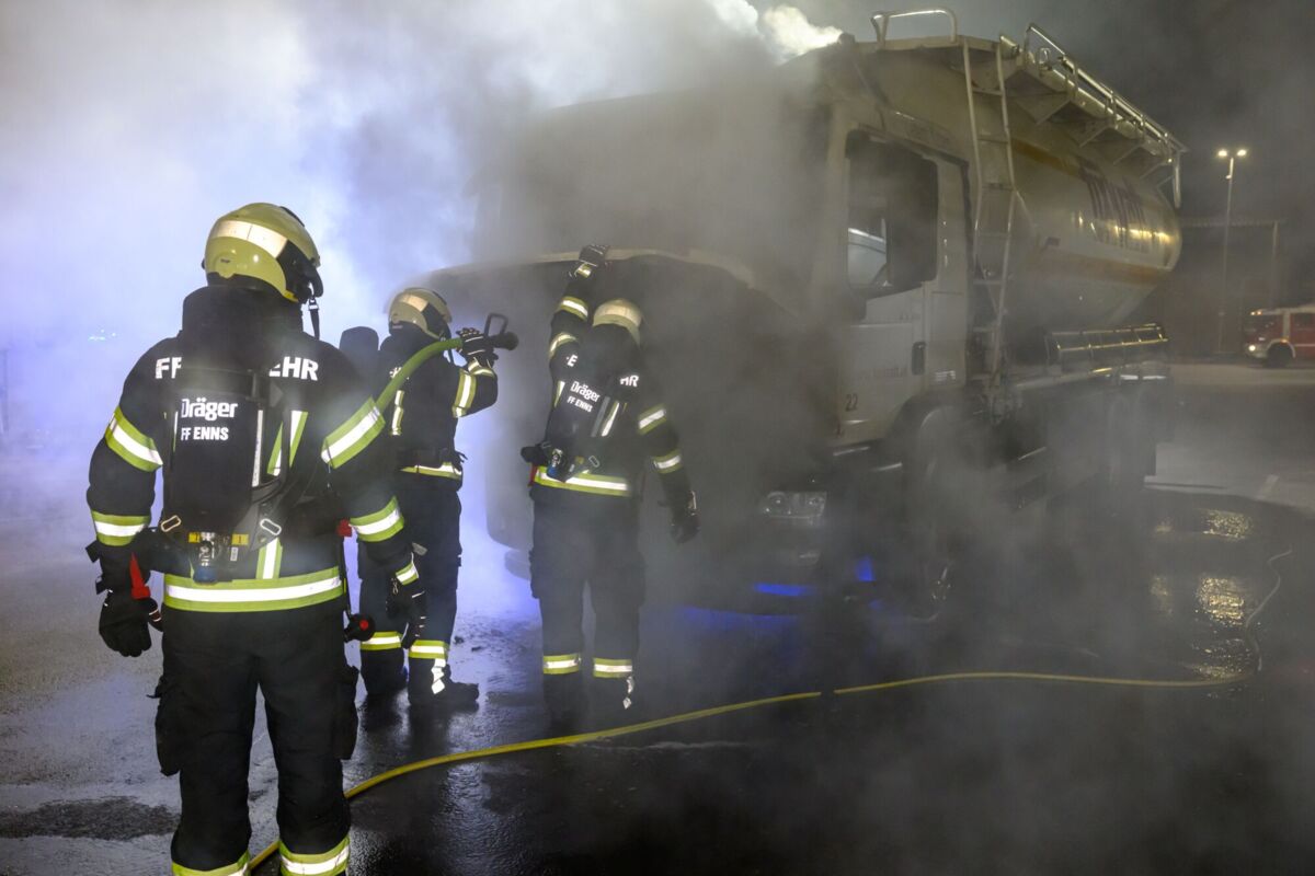 ENNS. In den frühen Morgenstunden kam es am Freitag in der Industriehafenstraße in Enns zu einem Brand eines Lkw.
