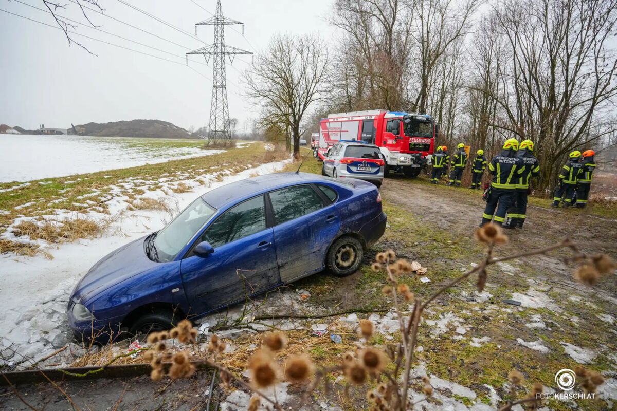 Ein 20-jähriger Linzer fuhr am Sonntag mit seinem Auto im Ortsteil Haid, Gemeinde Hörsching, auf einem Güterweg. Dabei verunfallte er und landete in einem neben dem Güterweg verlaufenen Bach, wodurch sein Fahrzeug mit der Front im Wasser stand.