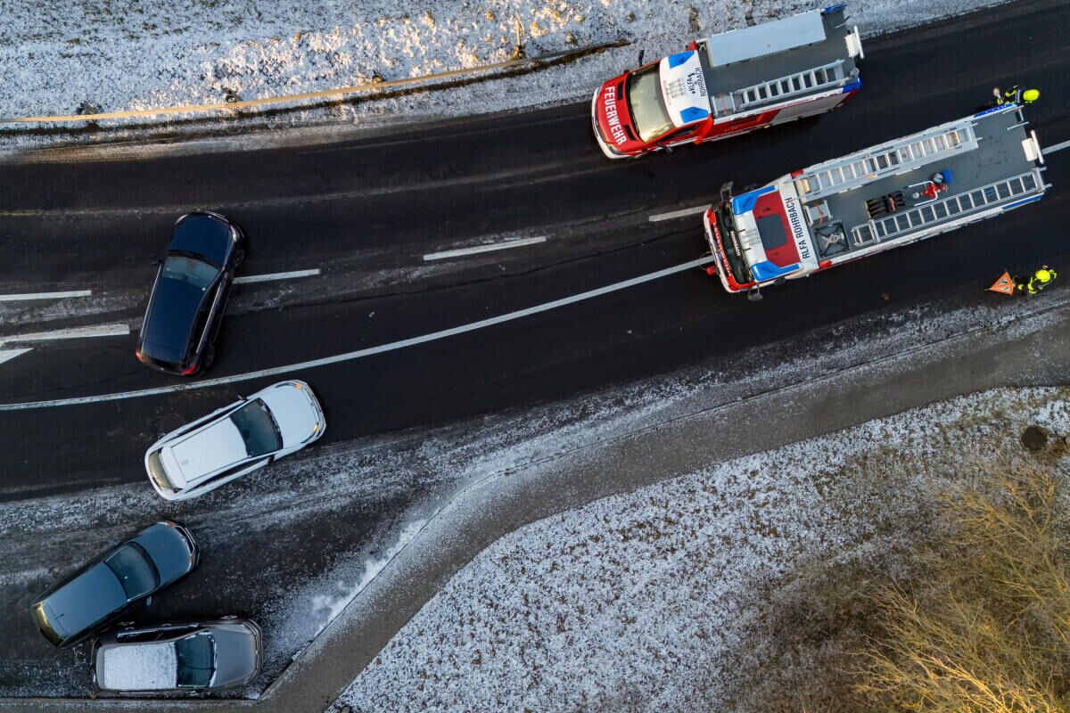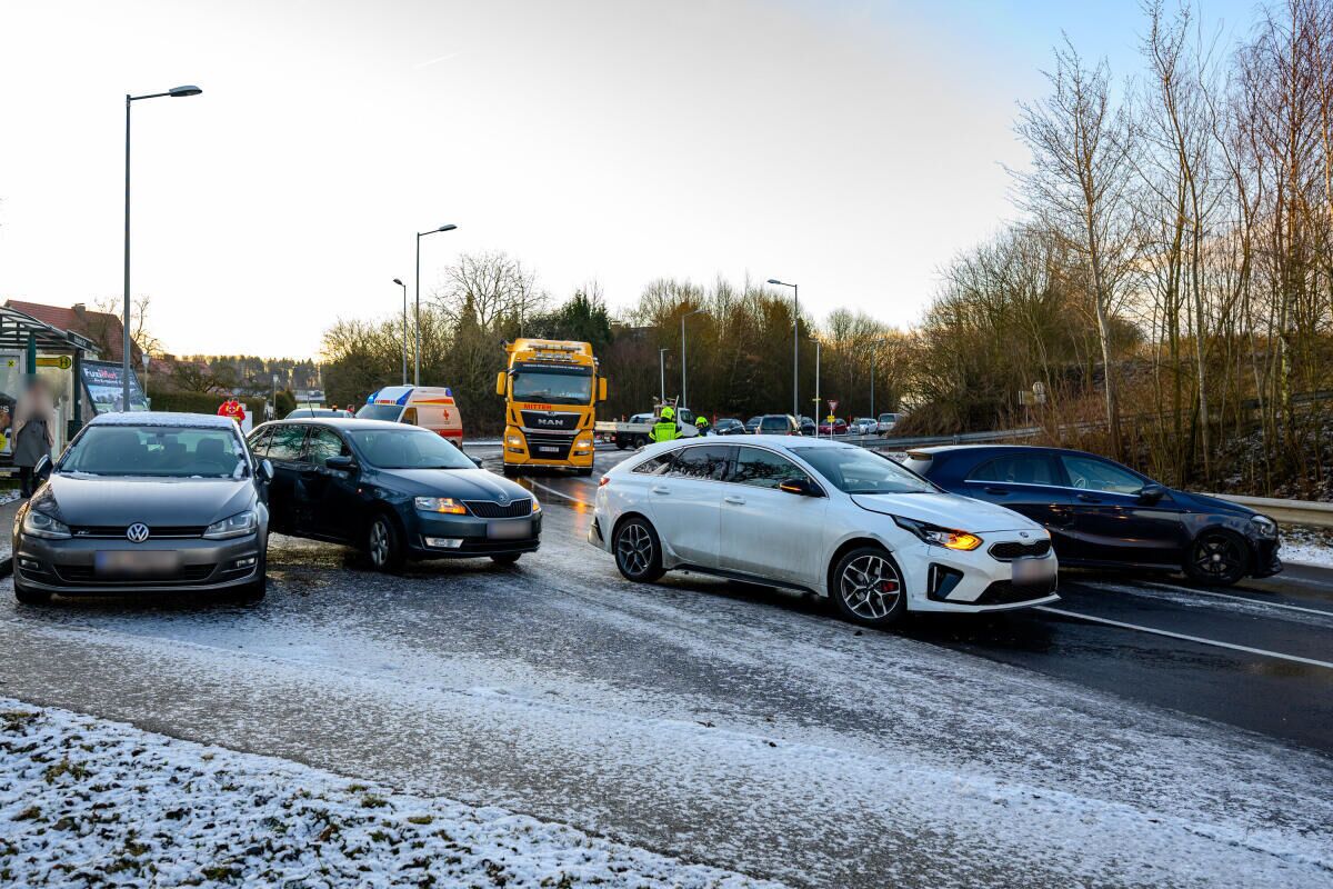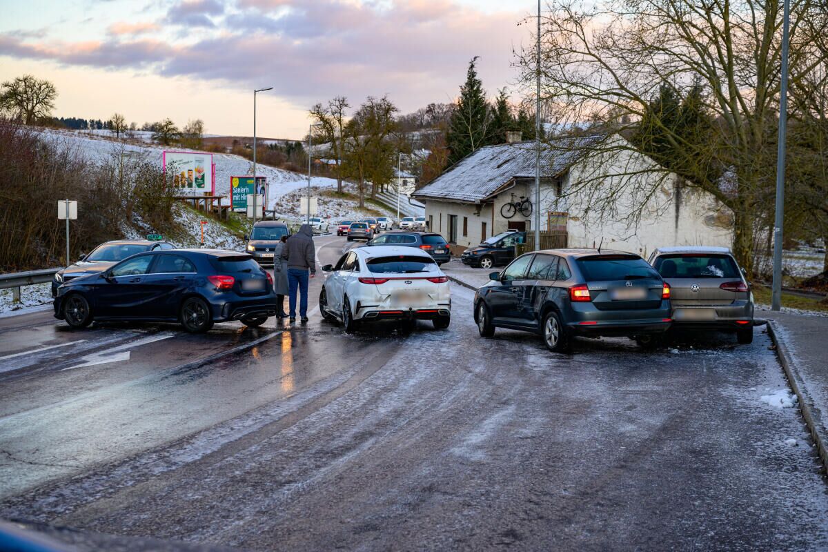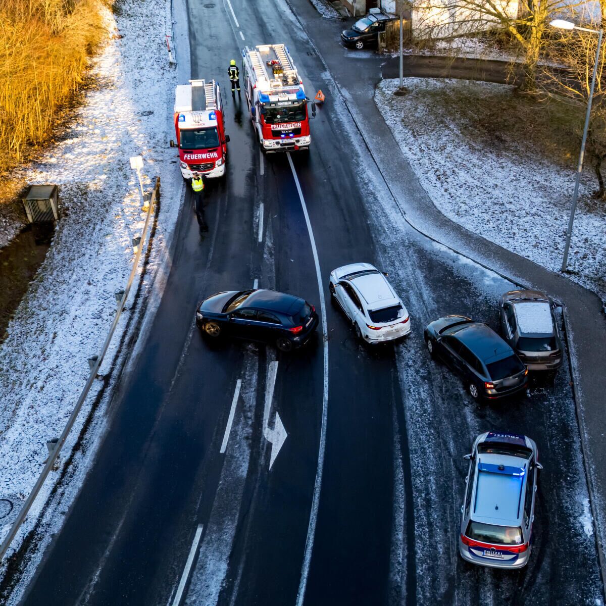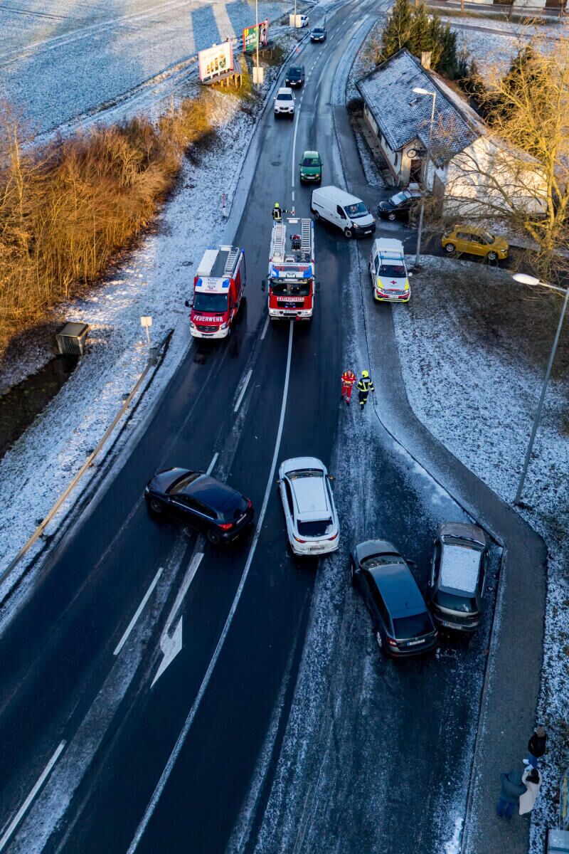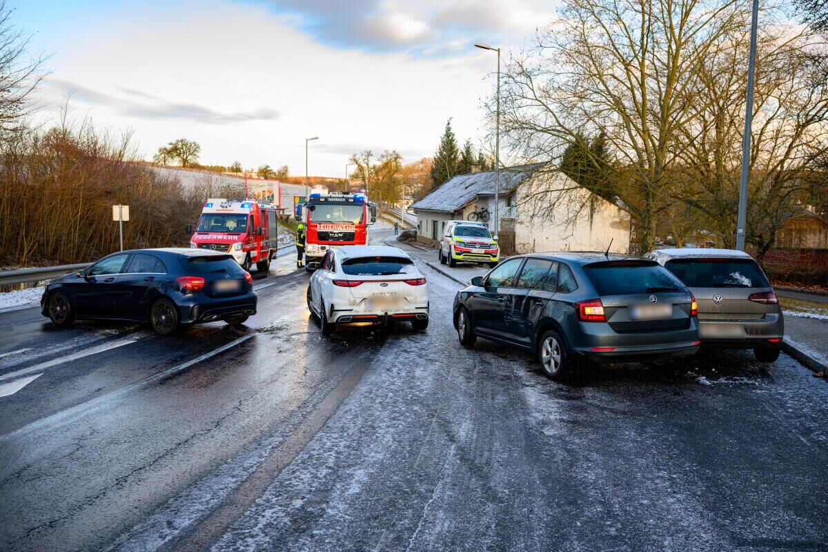 Insgesamt waren vier Personen an dem Unfall beteiligt. Nach ersten Informationen dürfte Glatteis auf der Fahrbahn zu dem Zusammenstoß der beteiligten Pkw geführt haben.