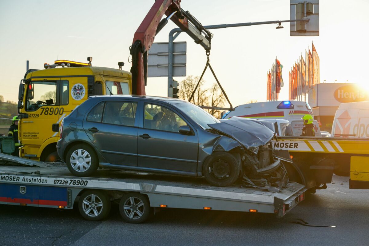 Während der Rettungs- und Aufräumarbeiten war die B139 im Bereich der Kreuzung beim Haid Center zeitweise nur erschwert passierbar. Die Polizei hat die Ermittlungen zur Unfallursache aufgenommen.