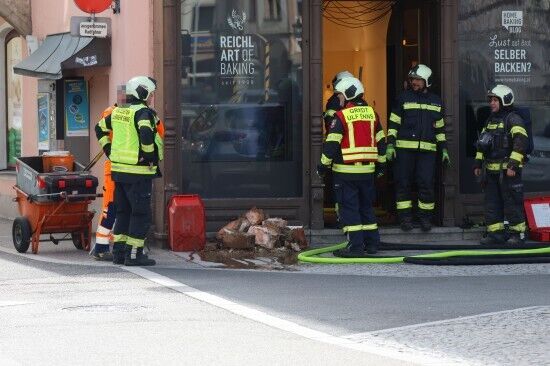 Feuerwehr löscht Brand in Zwischendecke eines historischen Geschäfts in Enns