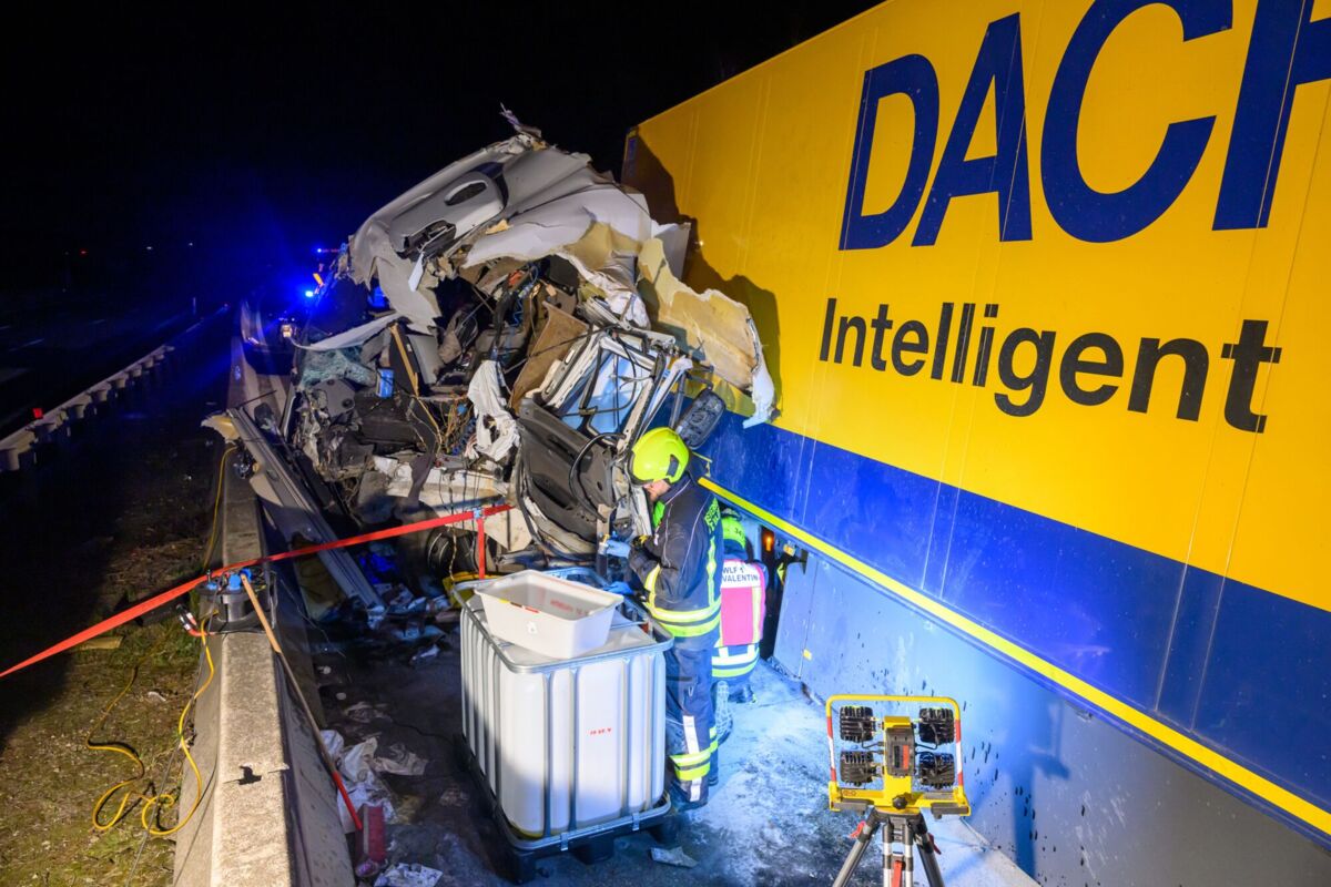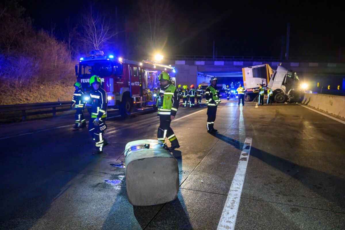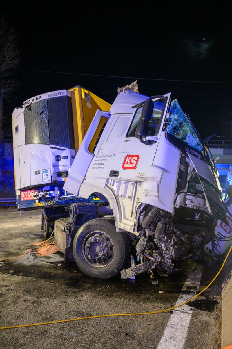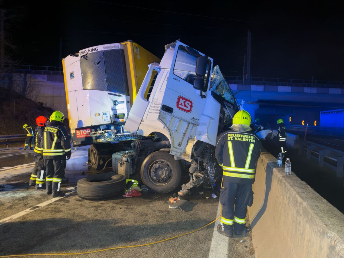 Nach ersten Informationen kollidierte ein Lkw-Lenker mit der Mittelleitschiene aus Beton. Die Zugmaschine wurde dabei schwer beschädigt und stark deformiert. Trotz des massiven Schadens konnte der Fahrer das Fahrzeug eigenständig verlassen, wie von den Einsatzkräften vor Ort berichtet wurde.