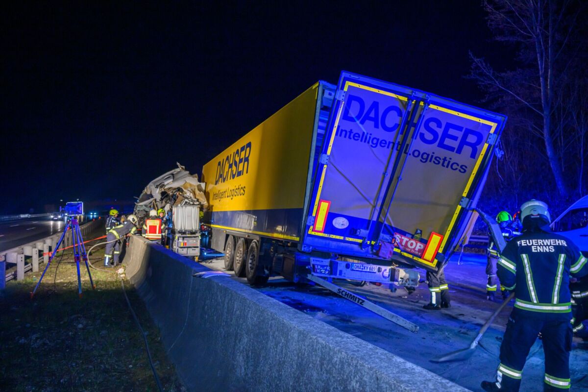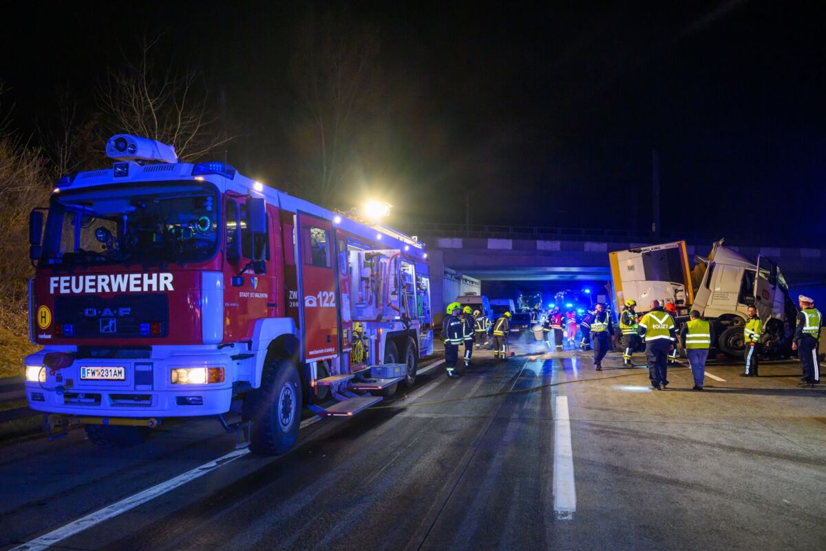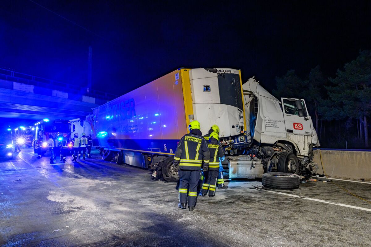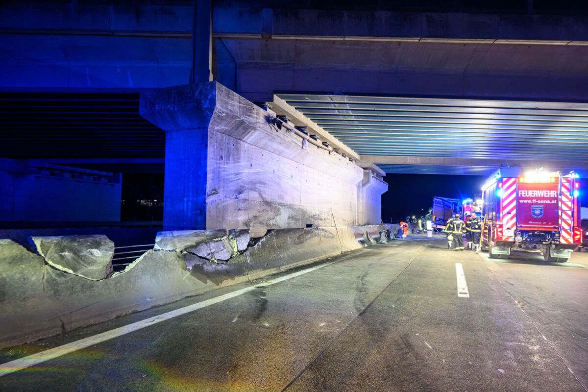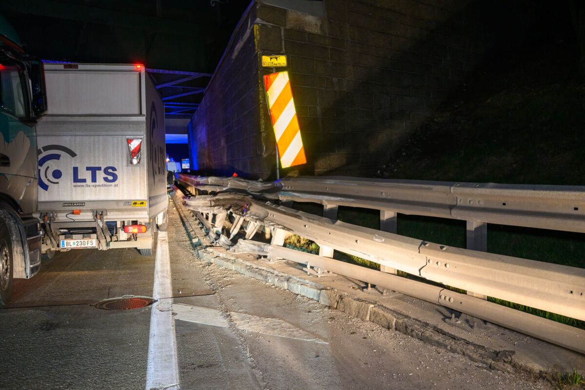 Lkw kracht auf der A1 bei St. Valentin gegen Beton-Mittelleitschiene