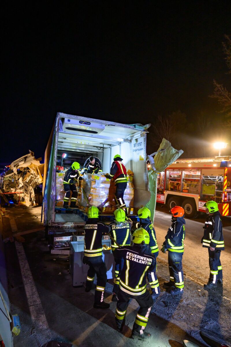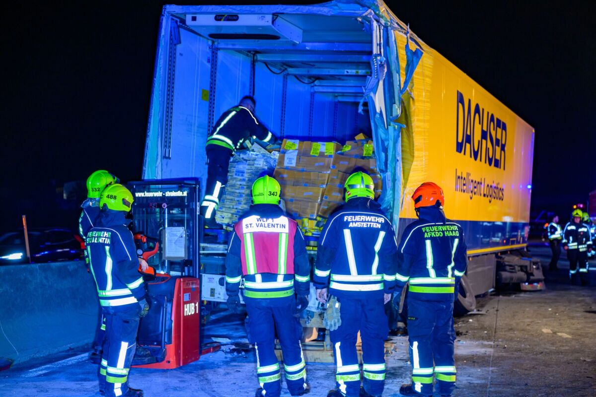 Wegen des Unfalls wurde die A1 in Fahrtrichtung Wien komplett gesperrt. Größere Mengen an Kraftstoff sind aus dem beschädigten Lkw ausgelaufen, weshalb umfangreiche Aufräumarbeiten notwendig waren. Im Einsatz standen die Feuerwehren der Stadt St. Valentin und der Stadt Enns und die Feuerwehr Amstetten und ASFINAG sowie die Autobahnpolizei mit mehreren Einsatzkräften.