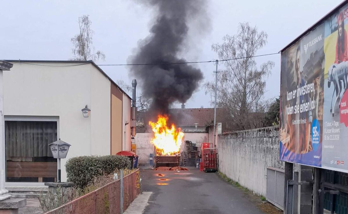 PASCHING. In Pasching im Bezirk Linz-Land ist am Montag in der Einfahrt eines Gastronomiebetriebs ein größerer Abfallcontainer in Brand geraten. Durch das rasche Eingreifen von Ersthelfern und den anschließenden Einsatz der Feuerwehr konnte ein Übergreifen der Flammen verhindert werden.