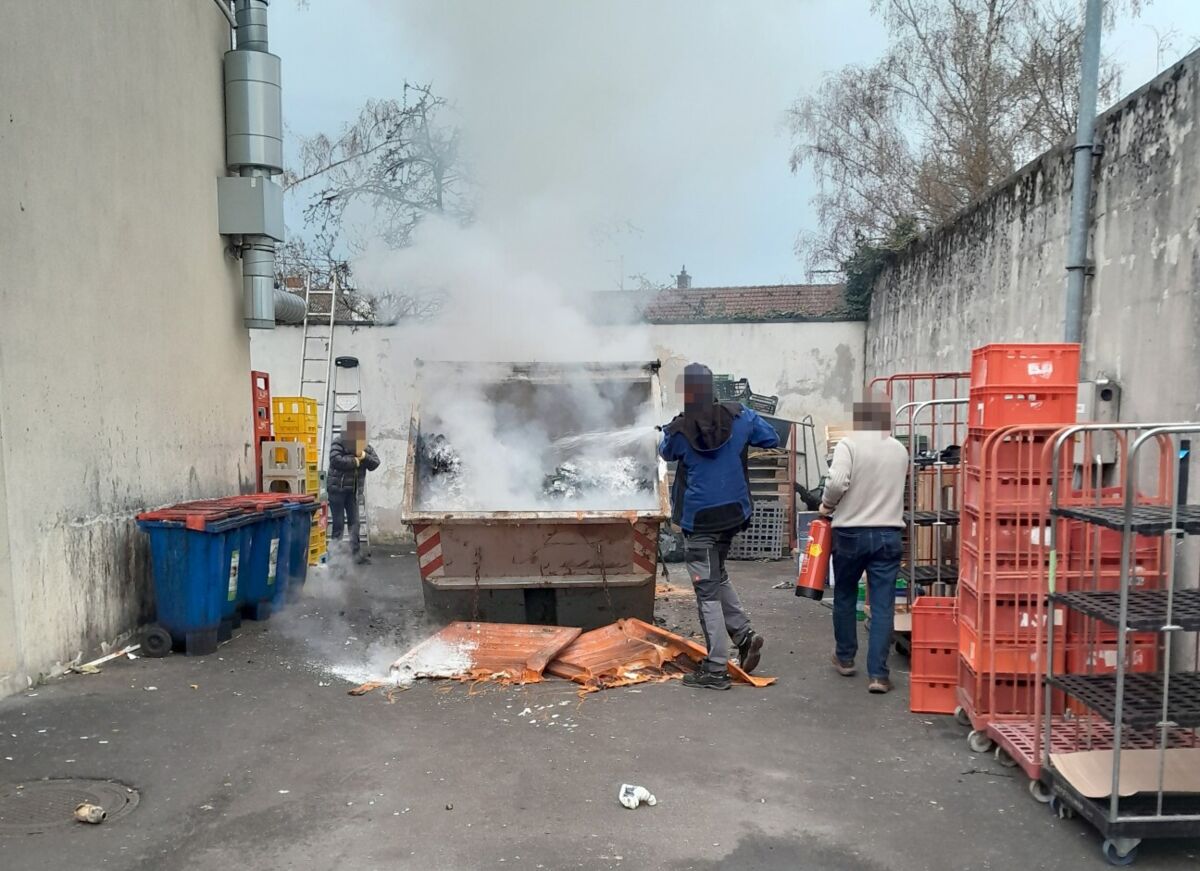 Ersthelfer verhindern Ausbreitung eines Containerbrandes in Pasching