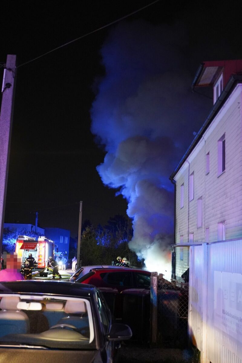 LEONDING. Am späten Sonntagabend hat ein ausgedehnter Brand eine Garage neben einem Mehrparteienwohnhaus erfasst und zwei abgestellte Autos schwer beschädigt.