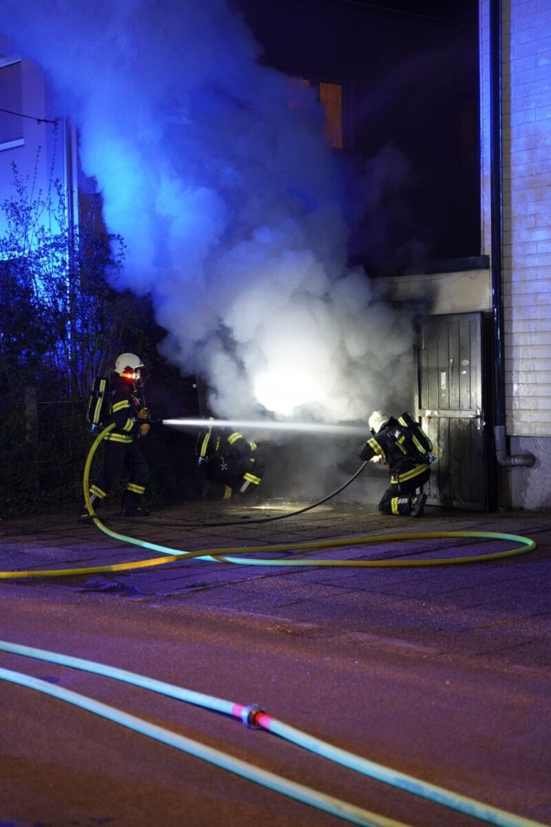 Beim Eintreffen der ersten Feuerwehrmannschaften stand die Garage bereits in Vollbrand. Neben den Fahrzeugen befanden sich darin auch mehrere potenziell gefährliche Objekte wie Spraydosen und eine Gasflasche.
