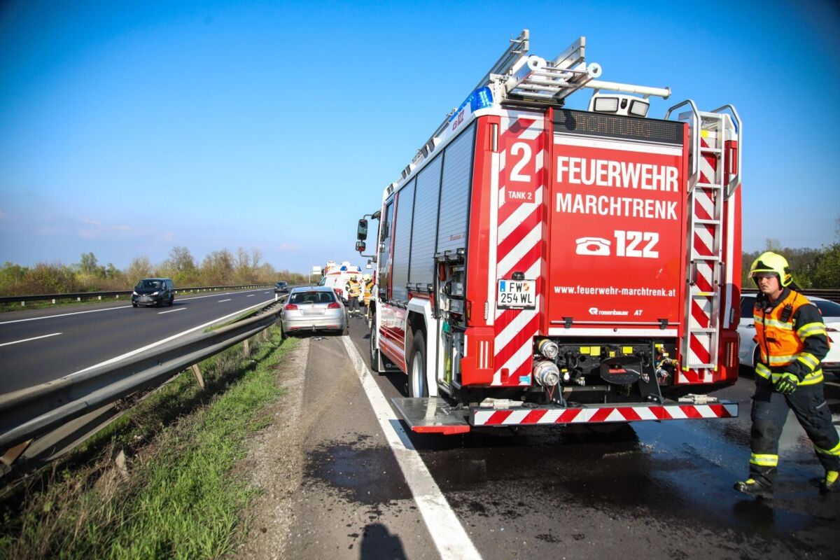 Auto kracht auf A25 bei Pucking gegen Mittelleitschiene