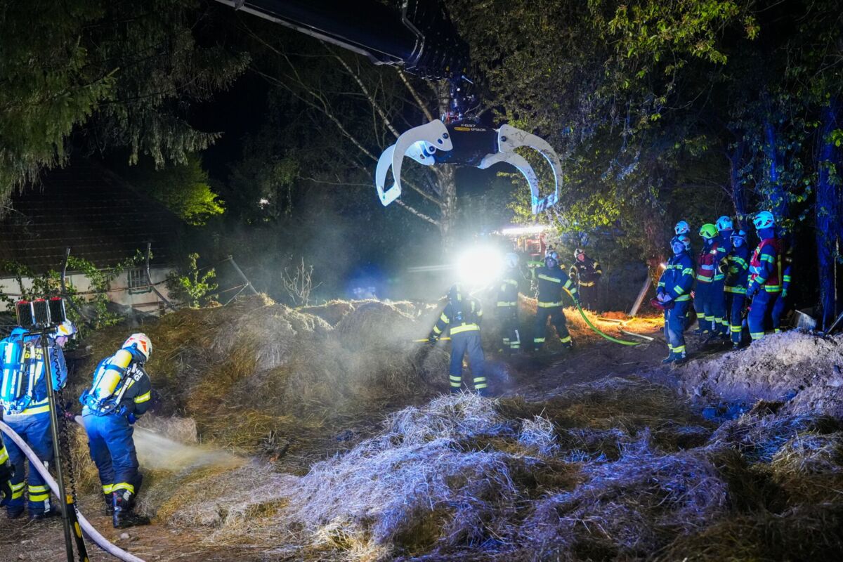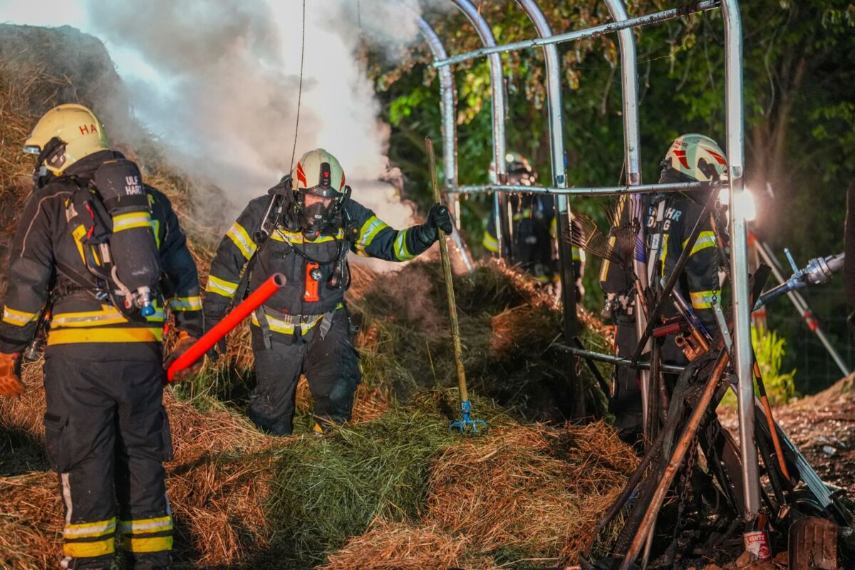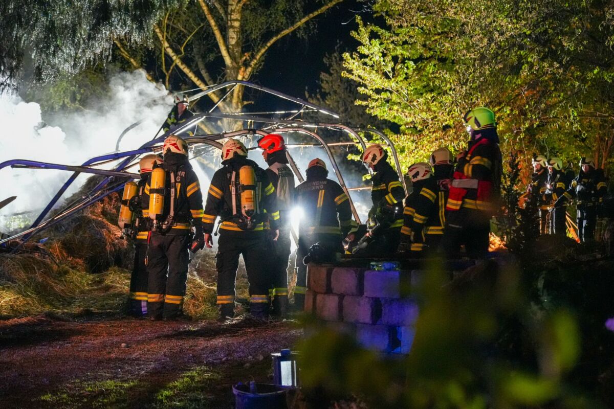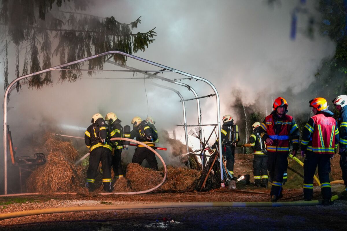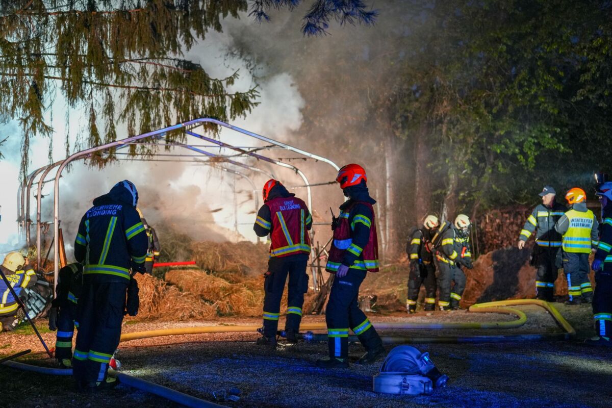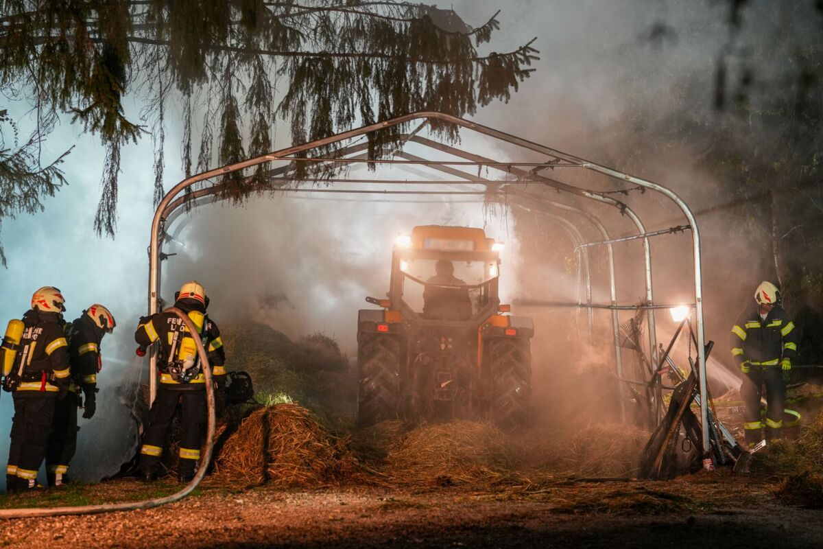 Zelthalle mit Heu auf Bauernhof in Leonding in Brand geraten
