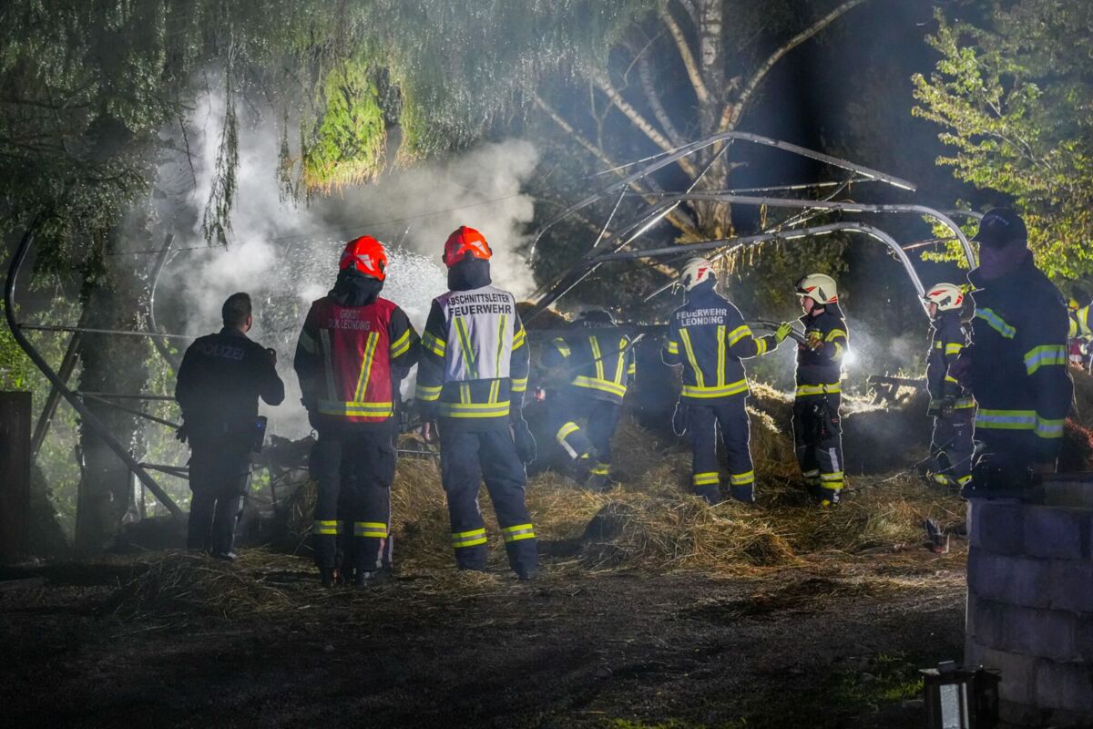Mit dem Alarmstichwort „Brand landwirtschaftliches Objekt“ wurden am Mittwochabend drei Feuerwehren zu einem Bauernhof im Gemeindegebiet von Leonding alarmiert. Eine Rauchsäule war bei der Anfahrt bereits erkennbar. Es stand eine Zelthalle, die offenbar als Heulager genutzt wurde, in Flammen. Ein größeres Aufgebot an Einsatzkräfte war vor Ort, das Feuer konnte rasch eingedämmt werden. Ein Übergreifen der Flammen auf angrenzende Gebäude wurde ebenso erfolgreich verhindert. Die Polizei ermittelt.