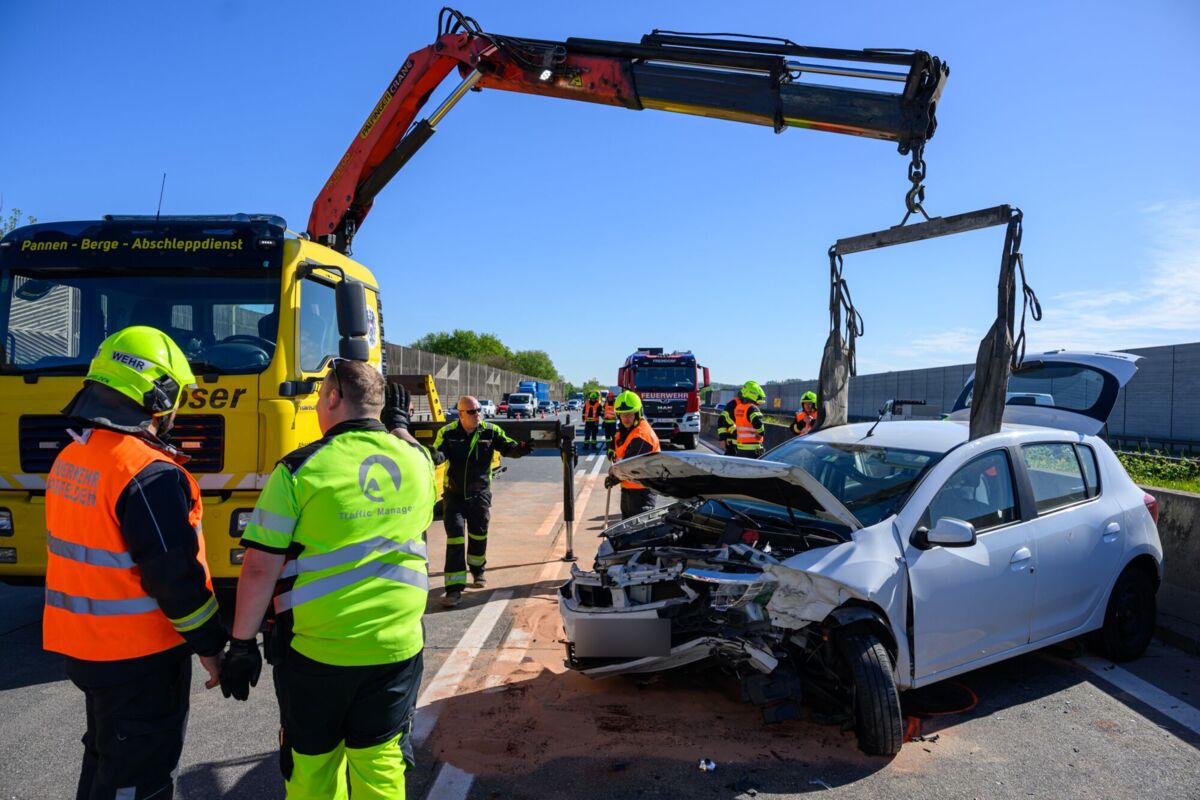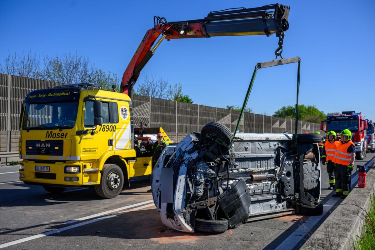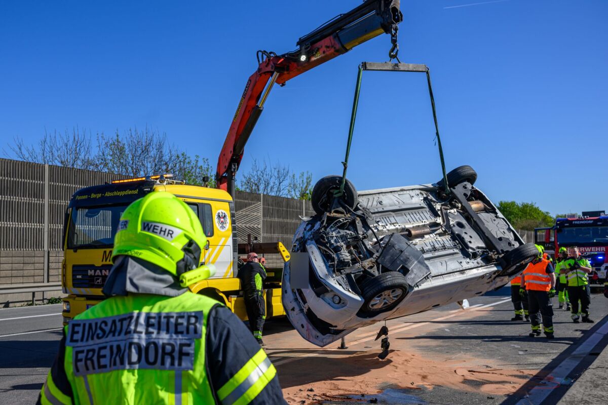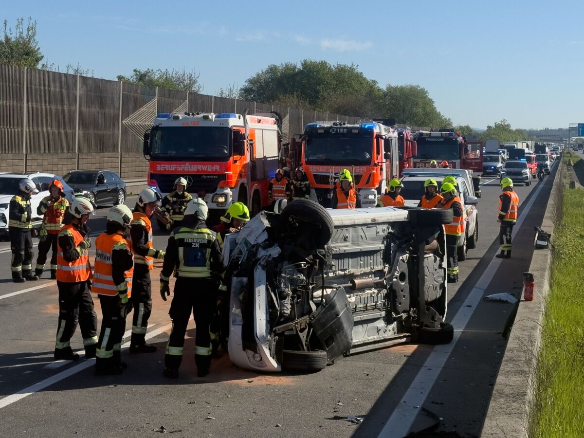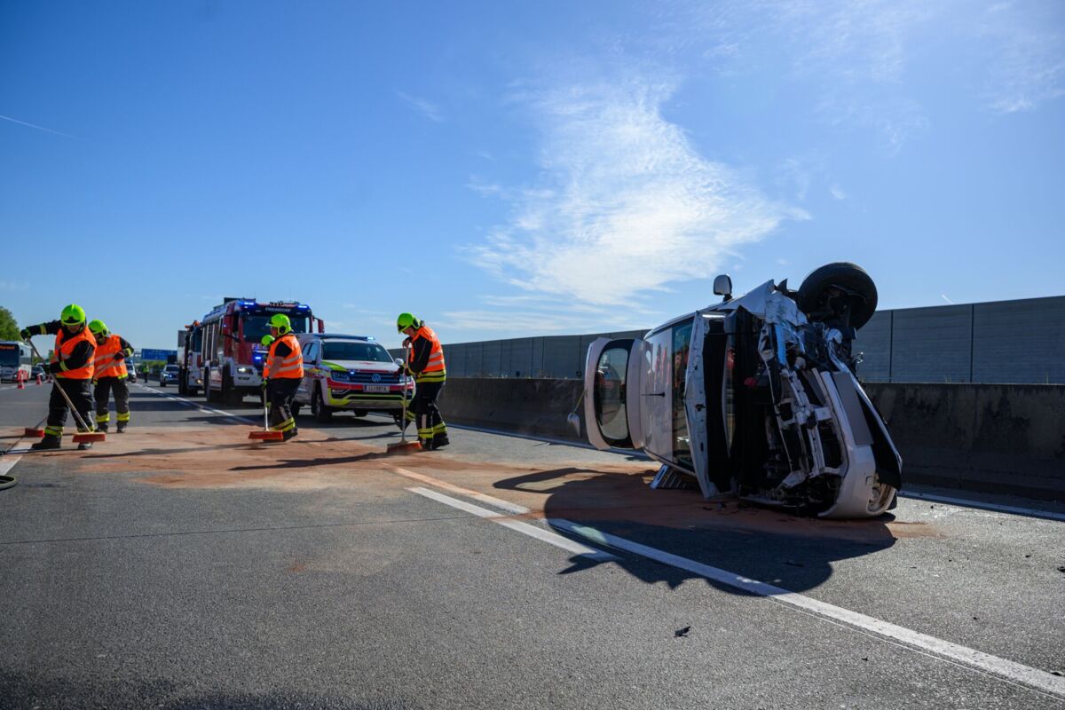 Nach ersten Erkenntnissen dürfte ein Spurwechsel den Zusammenstoß ausgelöst haben. Eines der Fahrzeuge geriet dabei außer Kontrolle, blieb auf der Fahrbahn liegen und kam seitlich gekippt zum Stillstand.