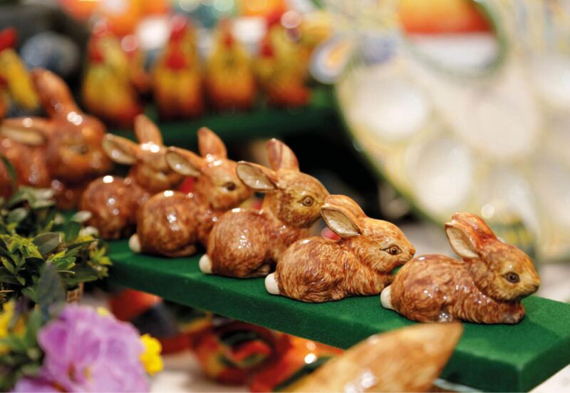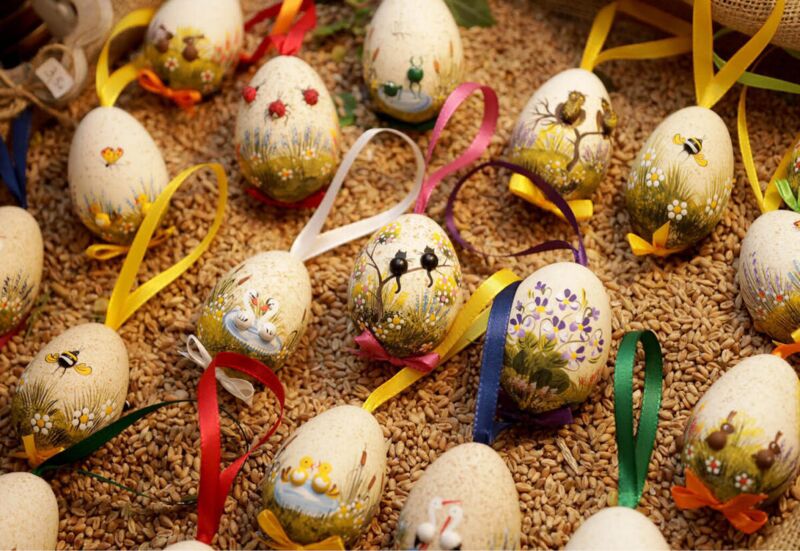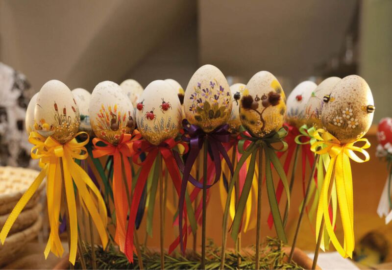 Das hochwertige Sortiment in den liebevoll dekorierten Räumen und Sälen reicht von Eiern in allen Variationen über Holzschnitzereien, Keramik, Glaskunst, Schmuck und österliche Dekorationsartikel bis hin zu Nützlichem für Haus und Garten. An den gastronomischen Ständen locken kulinarische Leckerbissen von süß bis sauer sowie erfrischende Getränke.