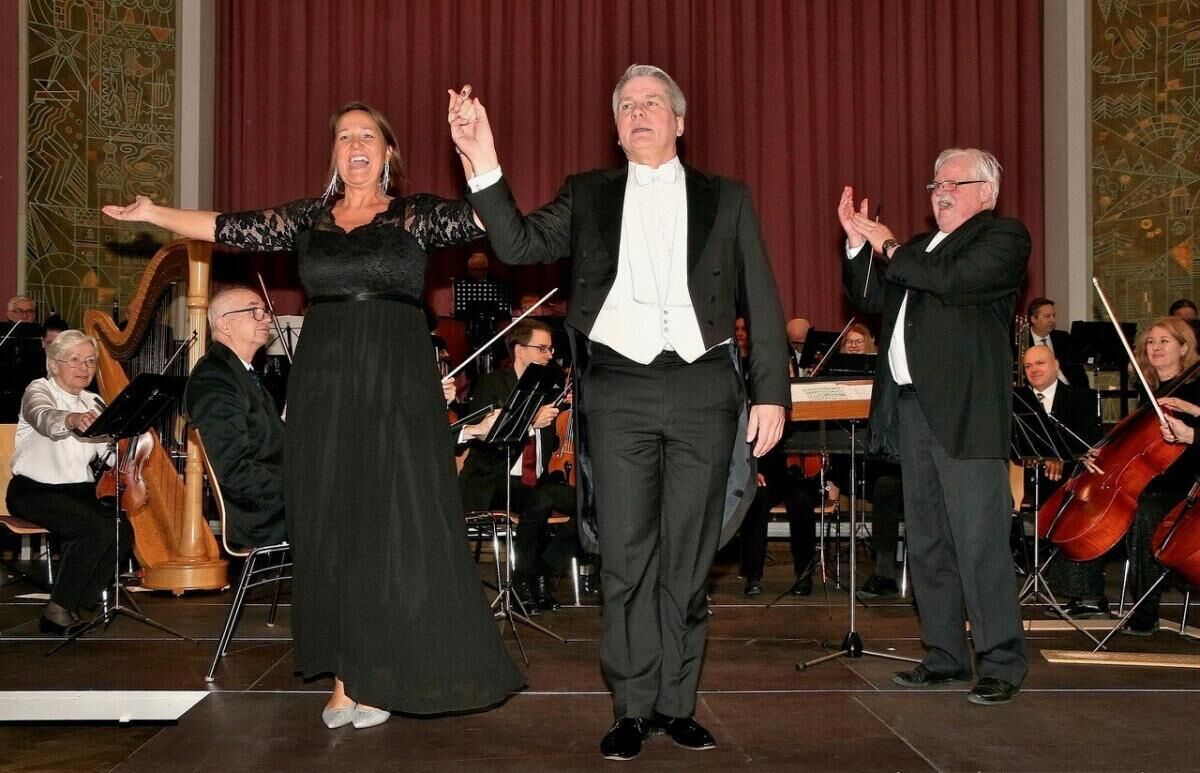 Die Gesangssolisten Carina Hohner (Sopran) und Harald Wurmsdobler (Tenor) überzeugten mit beachtlicher Stimmkraft und zeigten zudem bemerkenswerte schauspielerische Fähigkeiten mit humorvoller Note. Dirigent Ernst Kronsteiner leitete das Konzert mit viel Schwung und Feingefühl.