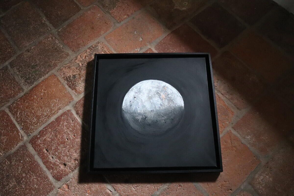 Ihr Werk, gefertigt aus Asche und 22-karätigem Roségold auf Leinwand, greift die Gegensätze von Vergänglichkeit und Beständigkeit auf. Damit trifft es den aktuellen Zeitgeist: Während im Rahmen des NASA Artemis Program neue Mondmissionen vorbereitet werden, rückt auch die künstlerische Auseinandersetzung mit dem Mond verstärkt in den Fokus.