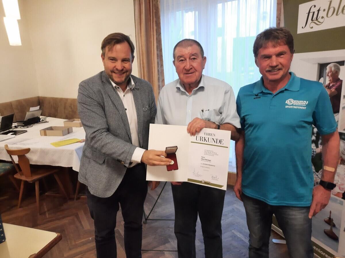 In seiner Zeit als oberster „Tarockierer“ wirkte er bei der Durchführung von über 150 Turnieren mit. Eine ehrenamtliche Leistung, welche nicht selbstverständlich ist. Landesgeschäftsführer Bundesrat Franz Ebner und Landessportreferent Konsulent Walter Berger überreichten ihm deshalb das goldene Sportfunktionärsabzeichen des OÖ Seniorenbundes.