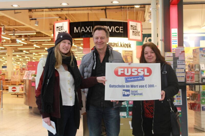 Cornelia und Franz Brachner verbrachten ihren Nachmittag im Haid Center in Ansfelden, um ein paar Einkäufe zu erledigen, als ihnen das Glücksengerl die entscheidende Frage stellte: „Welche ist Ihre Lieblingszeitung?“ Das Paar hatte die richtige Antwort „Tips“ parat und durfte damit den Gewinn entgegen nehmen. Praktisch, dass sich gleich in der Nähe eine Fussl-Filiale befand – dort konnten die glücklichen Gewinner ihren Gutschein gleich einlösen. Aber auch in anderen Bezirken hat das Tips-Glücksengerl wieder für freudige Überraschungen gesorgt. Weitere Gewinner waren Walter Engelbogen aus Wels, Bettina Zeppetzauer aus Neuhofen, Doris Landl aus Steyr und Hannes Mayr aus Perg.