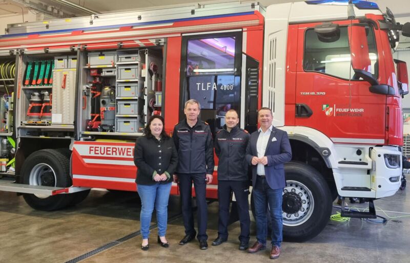 Viel Wert wurde zudem auf die Sicherheit gelegt, etwa mit der neuesten LED-Technik. Da auch Unwettereinsätze wie Starkregenereignisse immer mehr zunehmen, sind mehrere Tauchpumpen sowie ein Nasssauger zur Bewältigung und Abwicklung dieser Einsätze in das Fahrzeug mit eingeplant. „Alles in allem wurde hier ein Fahrzeug auf dem modernsten Stand der Technik für die Bewältigung der Brandeinsätze konzipiert und umgesetzt“, freut sich Bürgermeister Christian Partoll, der sich zugleich bei den Kameraden für den Einsatz bedankt.