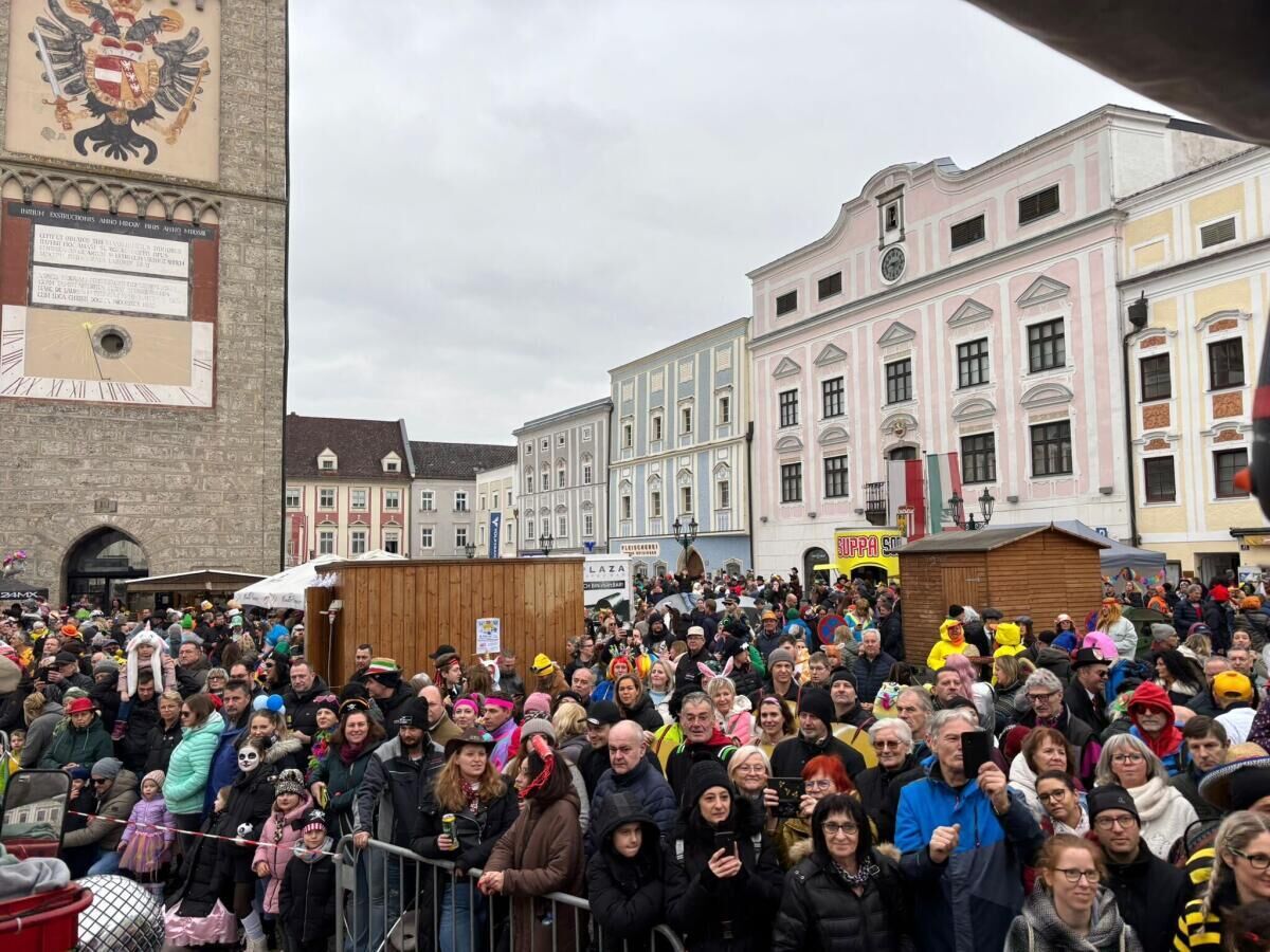 Spätestens dort war klar: Der Fasching in Enns ist wetterfest. Am Hauptplatz warteten hunderte Besucher, jubelten, klatschten und fotografierten – und empfingen den Zug mit genau jener Begeisterung, die man sonst nur bei Sonnenschein erwarten würde. Der graue Himmel blieb Kulisse, nicht Stimmungsmacher.