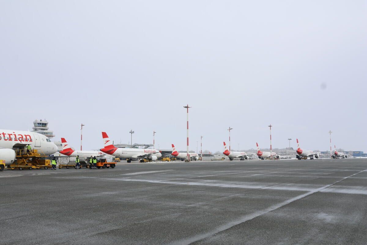 HÖRSCHING/LINZ. Wegen massiven Schneefalls in Wien mussten am Freitag, 20. Februar, mehrere Flüge umgeleitet werden – und sorgten am Flughafen Linz für ungewohntes Bild: Insgesamt acht Maschinen der Austrian Airlines landeten außerplanmäßig in Hörsching.