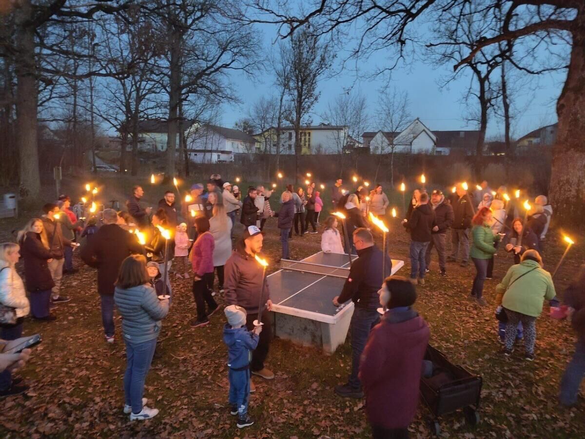 Von dort führte die stimmungsvolle Wanderung zum Spielplatz und durch die Ortschaft anschließend weiter zum Gasthaus Steindl. Besonders für die vielen Kinder war es ein besonderes Erlebnis, als mit Einbruch der Dunkelheit die leuchtenden Flammen der Fackeln den Weg erhellten und für eine beeindruckende Atmosphäre sorgten.