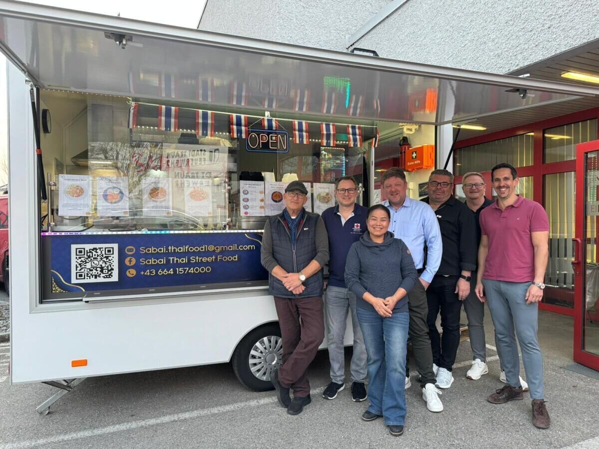 Der Foodtruck von „Sabai Thai Street Food“ machte Halt und versorgte mehr als 100 Anwesende kostenlos mit thailändischen Spezialitäten. Hinter der Aktion stand das Inhaber-Team Sukanya und Josef, das sich damit ausdrücklich für die Arbeit des Roten Kreuzes bedanken wollte.