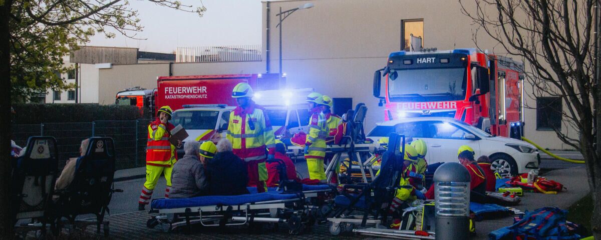 LEONDING. In einer betreuten Wohneinrichtung in Leonding ist Anfang April der Ernstfall geübt worden. Der Arbeiter-Samariterbund Österreich trainierte gemeinsam mit mehreren Feuerwehren ein Szenario, das es in sich hatte: Angenommen wurde ein Dachbrand, bei dem sich Rauch über einen Liftschacht bis in den Keller ausbreitete.