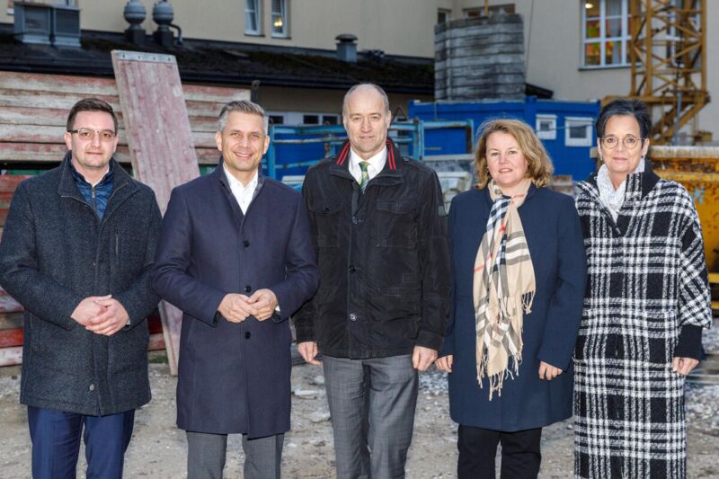 Vom zügigen Voranschreiten des Neubaus überzeugten sich Sozial-Landesrat Wolfgang Hattmannsdorfer und Trauns Bürgermeister Karl-Heinz Koll bei einem Lokalaugenschein am Standort. Das Fundament ist bereits fertiggestellt, können die Zeitpläne eingehalten werden, soll im Herbst 2023 der Rohbau fertiggestellt sein. „Als Land Oberösterreich unterstützen wir den Ersatzbau des Zentrums für Pflege und Betreuung in Traun kräftig. Denn es ist unsere Verantwortung, dass diejenigen, die unser Land aufgebaut haben, in Würde alt werden können. Dazu braucht es neben ausreichend qualifiziertem Personal vor allem eine zeitgemäße und moderne Infrastruktur in den Regionen“, so Landesrat Wolfgang Hattmannsdorfer.