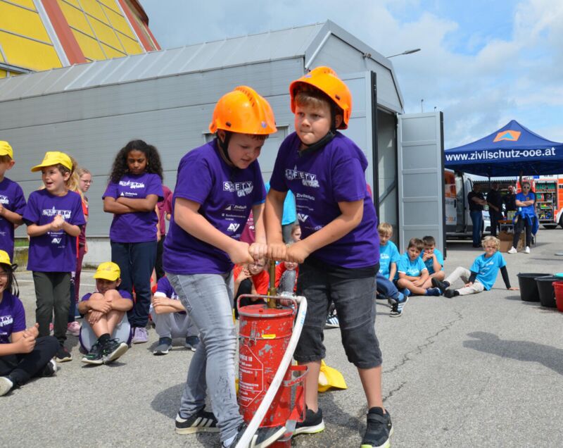 Ein Highlight für die Kinder war die Landung des Polizeihubschraubers, der anschließend besichtigt werden konnte. Feuerwehr, Rotes Kreuz und Polizei präsentierten als Rahmenprogramm ihre Fahrzeuge. Die Zivilschutz-Kindersicherheitsolympiade „Safety Tour“, die heuer in Zusammenarbeit mit dem Bundesministerium für Inneres, der AUVA und dem Getränkeproduzent Starzinger ausgetragen wurde, erinnert die Kinder daran, an die Wichtigkeit der Notfallvorbereitung. Mit Spaß und Spiel wird die Eigenverantwortung gestärkt, die Kinder lernen so früh, wie wichtig Selbstschutz ist.