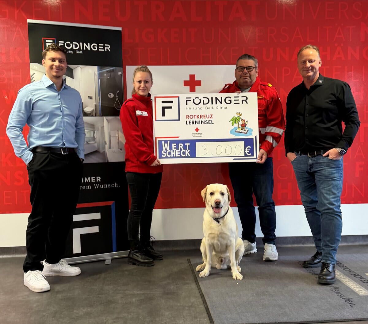 TRAUN. Mit einer großzügigen Spendenaktion unterstützte die Firma Födinger Heizung Bad das Rote Kreuz Linz-Land und dessen Projekt Lerninsel Traun. Im Rahmen eines Punschstandes wurden gemeinsam mit Partnern sowie Kunden 1.500 Euro gesammelt. Dieser Betrag wurde vom Unternehmen verdoppelt, sodass insgesamt 3.000 Euro an die Lerninsel übergeben werden konnten.