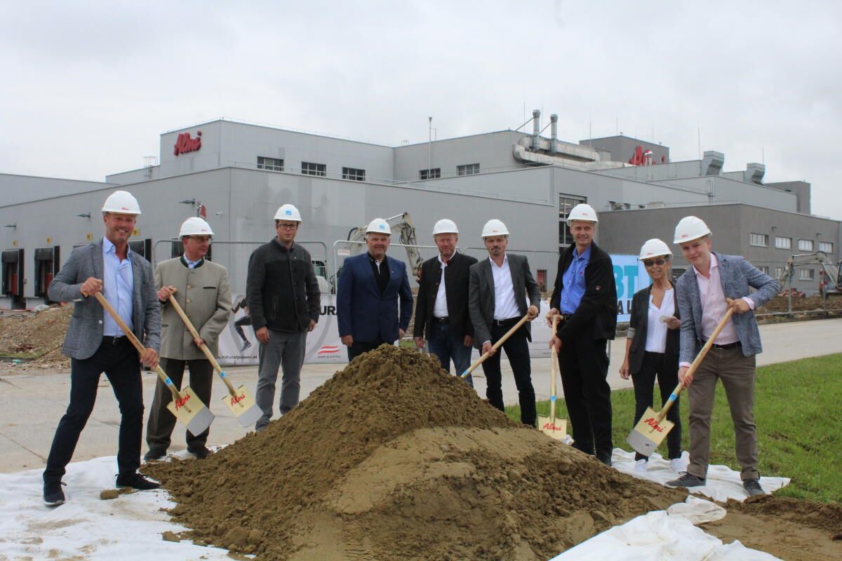 OFTERING. Am Mittwoch, 5. August, erfolgte der Spatenstich für den Um- und Zubau der Almi GmbH. Da sich das Unternehmen stetig im Wachstum befindet, wird der Unternehmenshauptsitz in Oftering nach der Errichtung 2006 nun nach 2012 schon zum zweiten Mal erweitert.