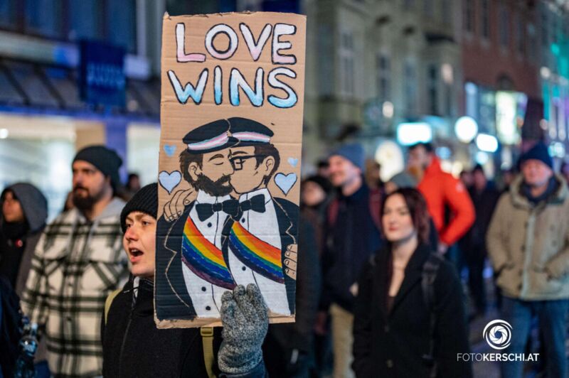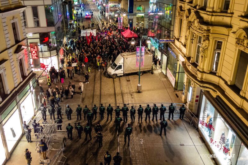 Rund 300 Kundgebungsteilnehmer versammelten sich auf „Einladung“ des „Bündnis Linz gegen Rechts“ am Abend vor dem Ars Electronica Center. Im Laufe des Demozugs durch die Stadt wurden es rund 650 Leute. Die Veranstalter sprachen von 1.200 Teilnehmenden. Nennenswerte Vorfälle oder Gewalt gab es keine.