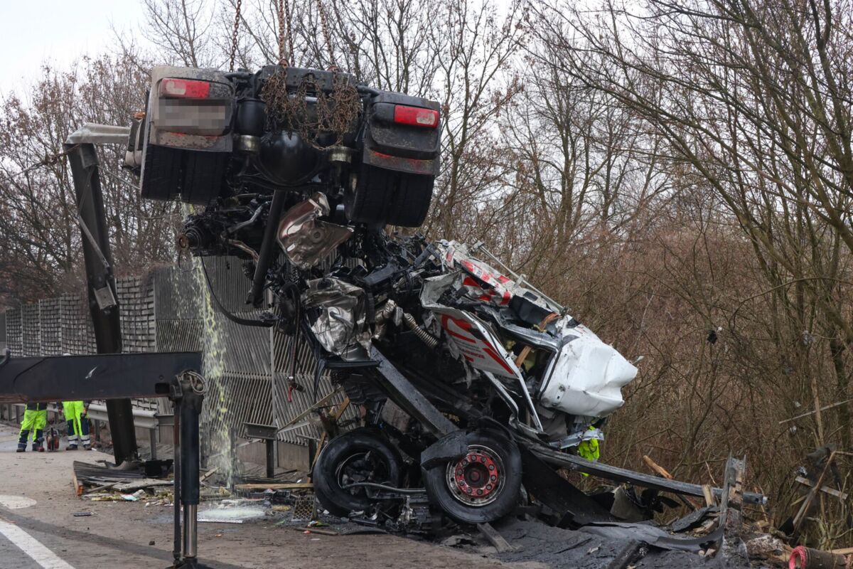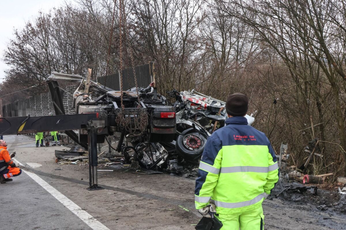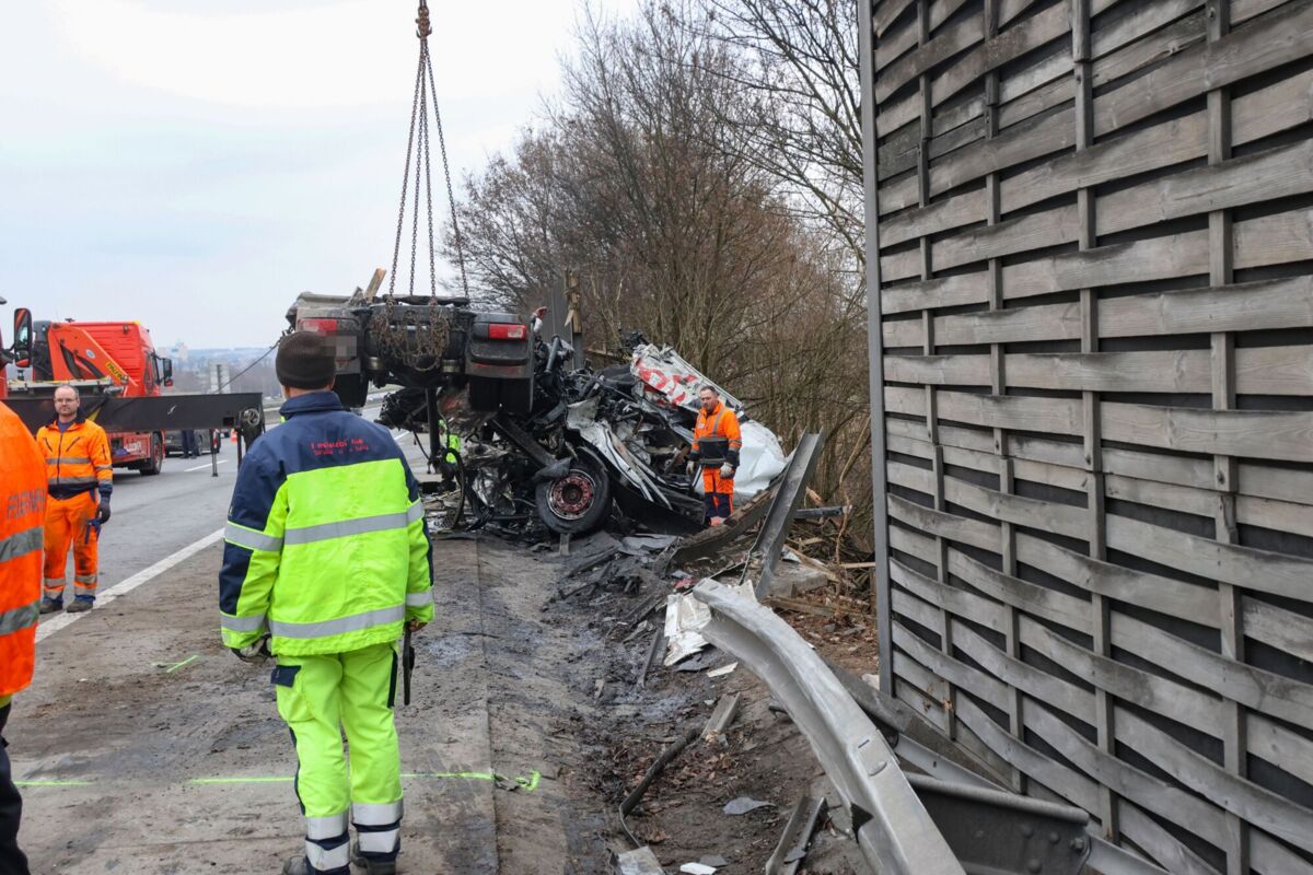 Gegen 13 Uhr kam ein Lkw-Lenker aus bislang unbekannter Ursache von der Fahrbahn ab und prallte gegen eine Lärmschutzwand, die dabei durchbrochen wurde. Durch die Wucht des Aufpralls wurde das Führerhaus vollständig vom Lastwagen abgerissen. Der Fahrer wurde nach ersten Informationen aus dem Fahrzeug geschleudert.