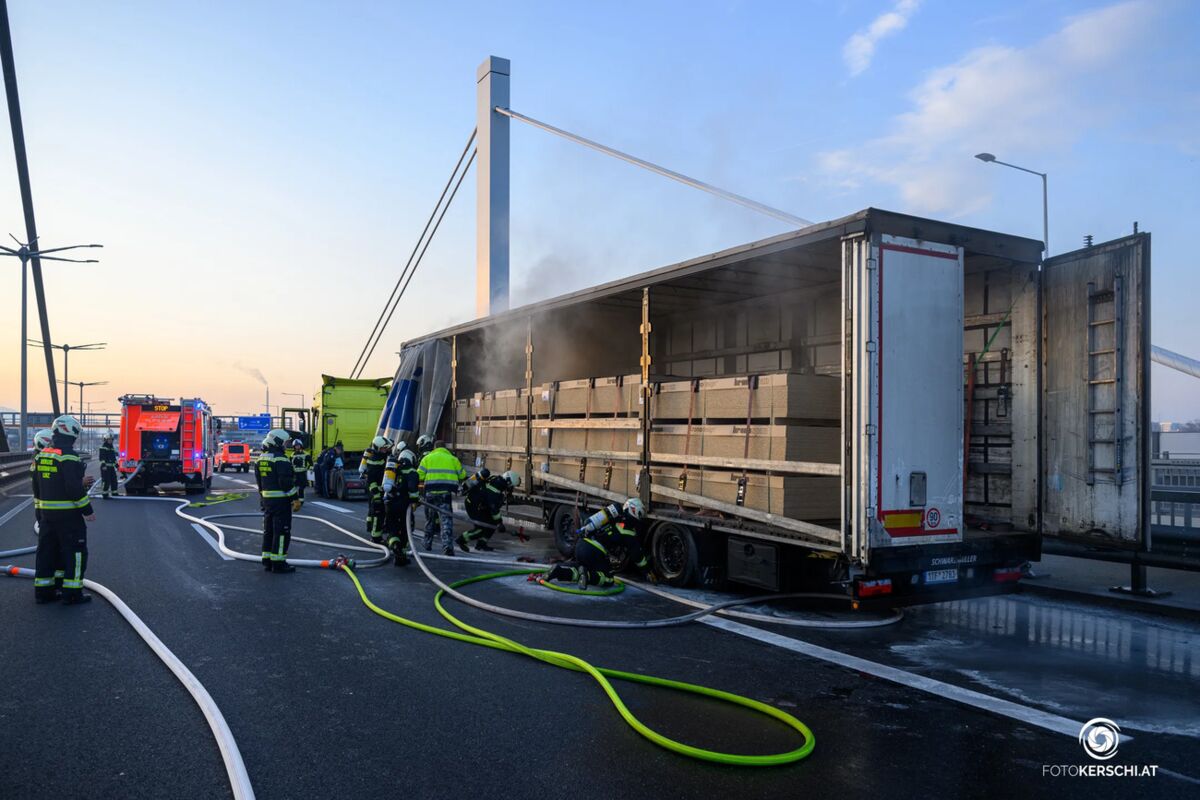 Nach ersten Informationen wurde der Brand offenbar durch einen Defekt an den Bremsen des Auflegers ausgelöst. Der tschechische Lkw-Lenker erkannte die Gefahr sofort und leitete umgehend eigene Löschmaßnahmen ein. Unterstützung erhielt er dabei von zwei weiteren Lastwagenfahrern, die zufällig nachfolgten und beide als Feuerwehrmänner ausgebildet sind.Während der Löscharbeiten musste die Hauptfahrbahn der A7 vorübergehend gesperrt werden. Der Verkehr wurde über eine Umleitung geführt, wodurch es zu erheblichen Verzögerungen im Frühverkehr kam.Dank des schnellen und beherzten Eingreifens der Beteiligten konnte Schlimmeres verhindert werden. Die alarmierten Einsatzkräfte der Berufsfeuerwehr Linz löschten das Feuer rasch ab. Glücklicherweise wurde bei dem Vorfall niemand verletzt.