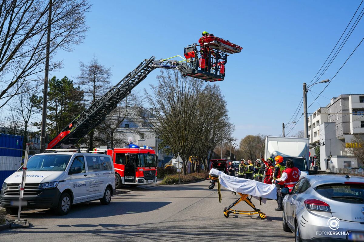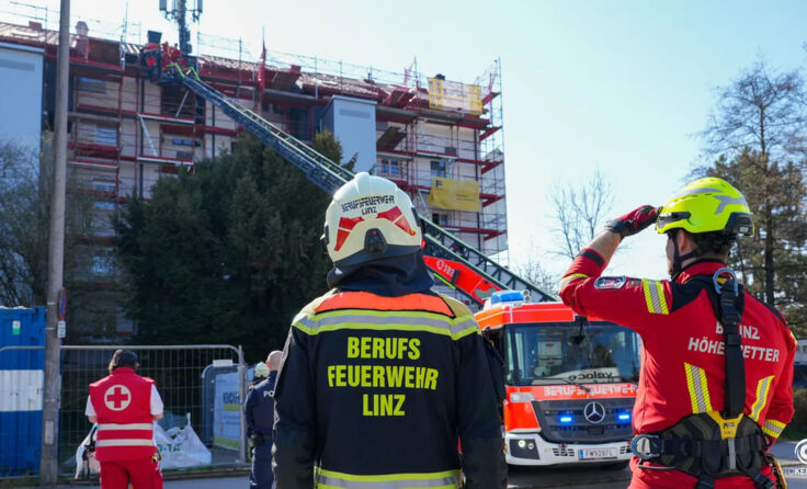 Am Montagvormittag ist es auf einer Baustelle in Linz zu einem medizinischen Notfall im Dachbereich eines Gebäudes gekommen. Ein dort beschäftigter Arbeiter klagte plötzlich über gesundheitliche Probleme und konnte die Baustelle aus eigener Kraft nicht mehr verlassen. Die Berufsfeuerwehr Linz wurde gegen 10 Uhr mit dem technischen Zug und speziell ausgebildeten Höhenrettern zum Einsatzort alarmiert. Aufgrund der Lage des Mannes im oberen Bereich des Gebäudes war eine Rettung über das Gerüst beziehungsweise den Dachbereich erforderlich. Zusätzlich rückten die Freiwillige Feuerwehr Ebersberg sowie das Rote Kreuz an. Die Einsatzkräfte der Feuerwehr Ebersberg mussten jedoch nicht aktiv eingreifen und konnten nach kurzer Zeit wieder abrücken. Die eigentliche Rettung übernahmen die Höhenretter der Berufsfeuerwehr Linz. Sie sicherten den Patienten, brachten ihn kontrolliert vom Dachbereich in den sicheren Bereich und übergaben ihn anschließend an das bereitstehende Team des Roten Kreuzes. Das Rote Kreuz führte im Anschluss die weitere medizinische Betreuung des Arbeiters durch und bereitete den Transport ins Krankenhaus vor. Auch die Polizei war zur Unterstützung und zur Aufnahme des Vorfalls vor Ort im Einsatz.