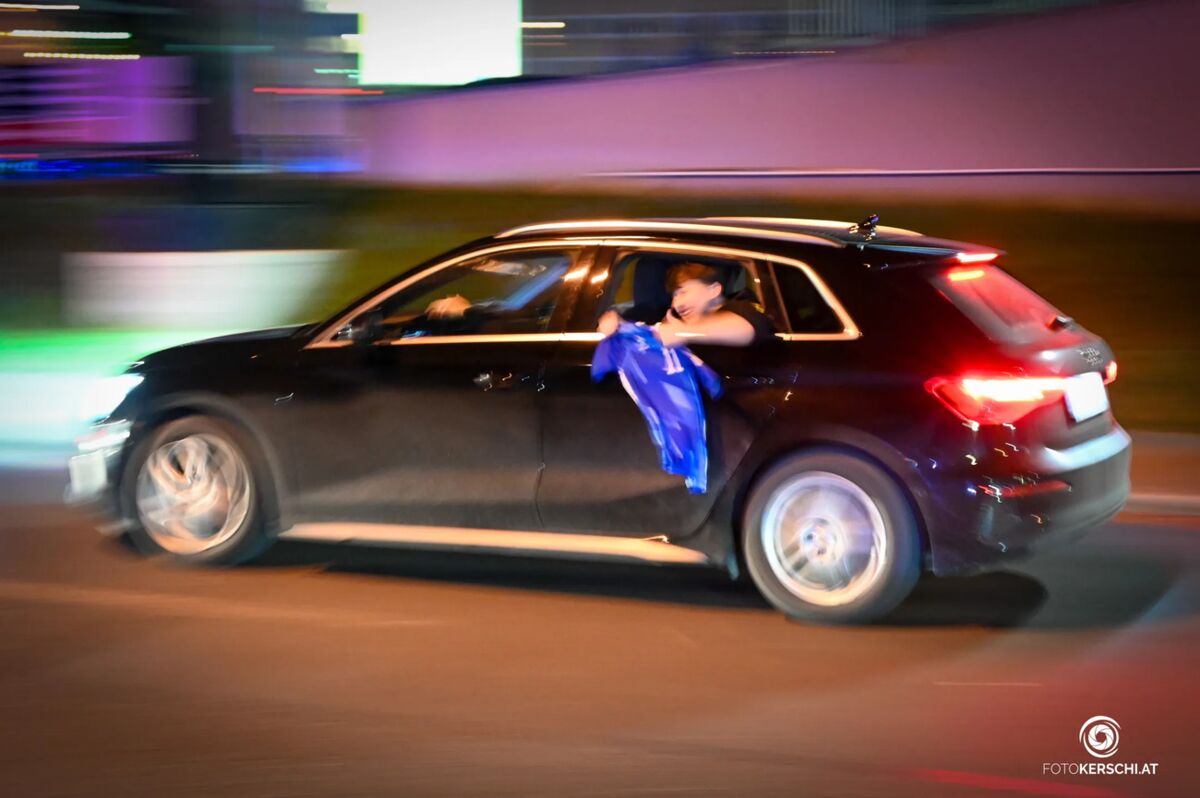 LINZ. In der Nacht auf Mittwoch haben sich zahlreiche Fußballfans unangemeldet am Parkplatz des Infracenter versammelt und damit einen umfangreichen Polizeieinsatz ausgelöst. Durch die feiernde Menschen- und Autokolonne kam es auf der B1 zeitweise zu erheblichen Verkehrsbehinderungen.