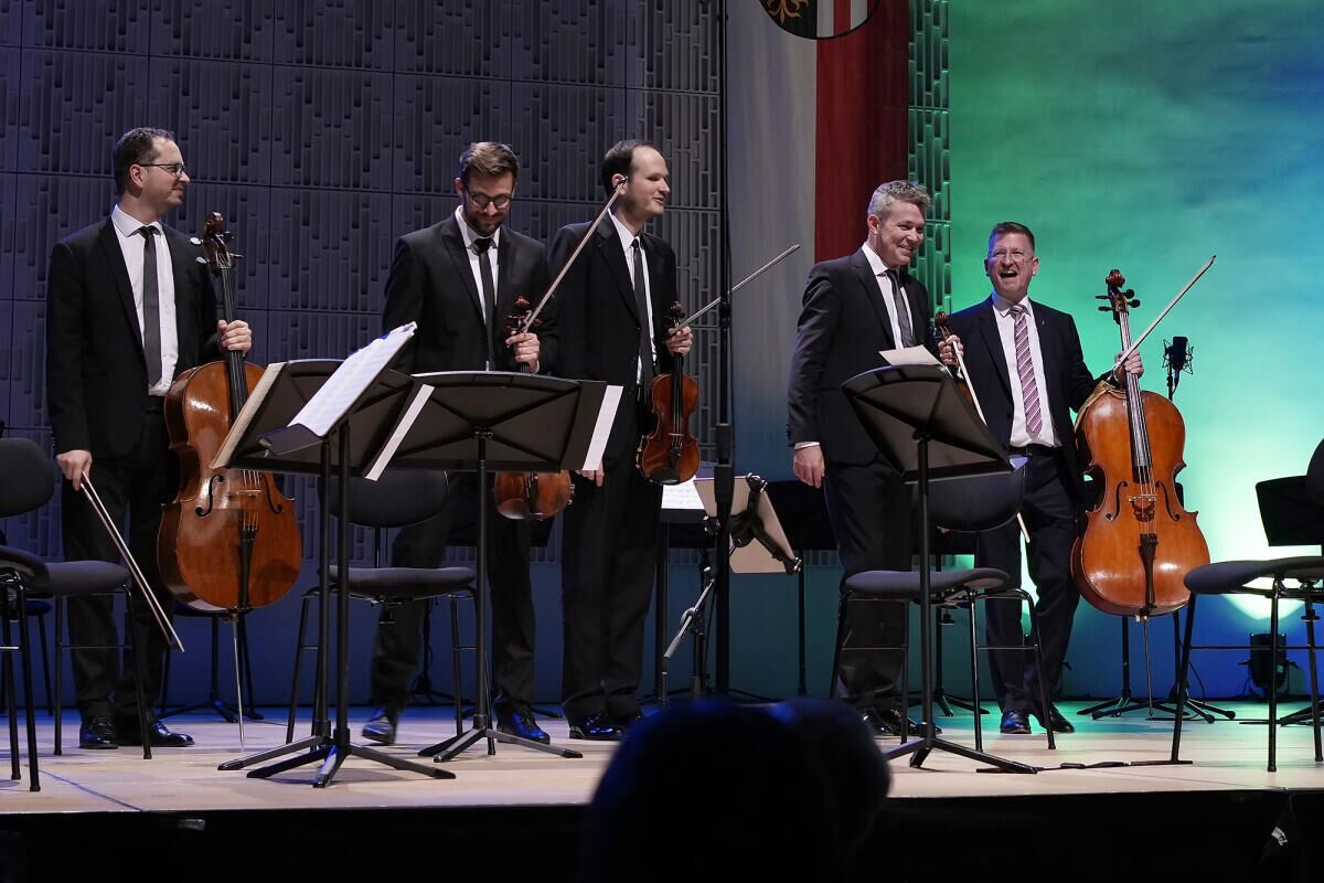 Zum Abschluss gab Martin Rummel seinen ersten musikalischen Auftritt als Rektor: Gemeinsam mit dem fantastischen Acies Quartett verzauberte der Cellist mit dem letzten Kammermusikwerk von Franz Schubert, dem ersten Satz aus dessen Streichquintett in C-Dur op. post. 163, D 956.