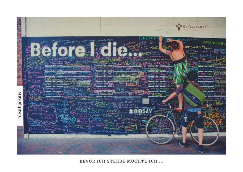 Die Eröffnung der ersten in Linz fix montierten Endlichkeitswand wird am 13. April um 17 Uhr beim Verein sagbar gefeiert. Die „Before I die“-Wand fordert jeden für sich auf, sich mit der Frage auseinanderzusetzen „bevor ich sterbe, möchte ich unbedingt noch...“. Die Wünsche rund um Sterben und Leben dürfen und sollen an der Wand notiert werden.