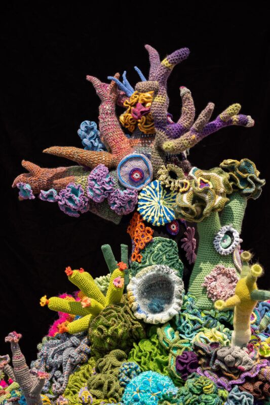 An die Häkelnadel, fertig, los: Eigene Beiträge lassen „Austrian Satellite Reef“ im Schlossmuseum wachsen