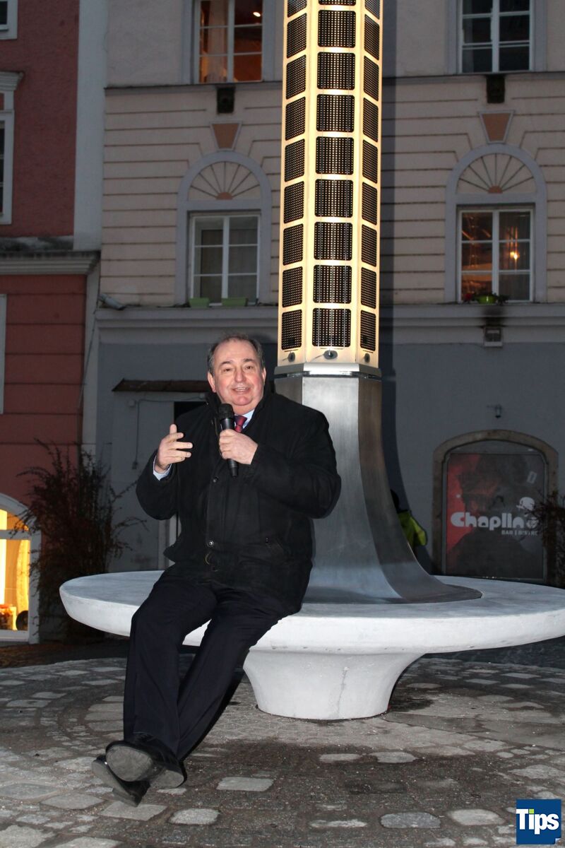Vizebürgermeister Bernhard Baier sieht in dem neuen markanten Brunnen eine tolle Aufwertung für die Altstadt, für Bürgermeister Klaus Luger steht der Brunnen als Symbol für die Entwicklung der Stadt mit seiner modernen, ökologischen Philosophie. „Der Brunnen ist ein Statement dafür, was wir noch zu bewältigen haben, was aber auch alles bewältigt wird.“