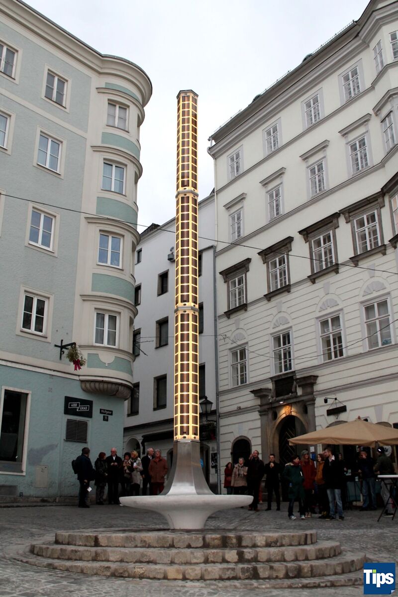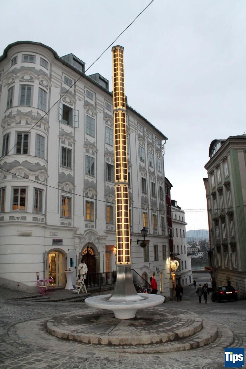 Als ein „Symbol für die Aufrichtung der Altstadt“ sieht Markus Rabengruber von Tp3 Architekten den Brunnen, der rund 8,5 Meter in die Höhe ragt. Er wurde genau an jener Stelle errichtet wo bis Ende der 90er-Jahre ein Brunnen stand, der aufgrund zunehmender Vermüllung durch Nachtschwärmer aber abgetragen wurde. Die Stufenanlage, auf der der neue Lichtbrunnen steht, wurde dem damaligen Aussehen nachempfunden. Durch die engagierte Arbeit des Vereins Altstadt neu sei die Linzer Altstadt in den letzten 15 Jahren wieder zu einem Schmuckstück geworden, freut sich Rabengruber.