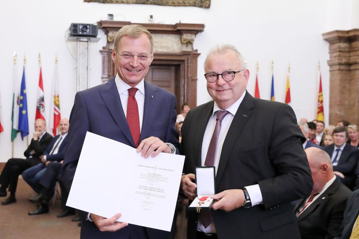 An fünf verdiente Oberösterreicher wurde das Goldene Verdienstzeichen verliehen: Fritz Gattermayer aus Scharten (Mitglied des Vorstandes der Agrana BeteiligungsAG und Lektor an der Boku Wien), Redakteur Günther Hartl aus Schörfling (Leiter des Projekts „ORF-Friedenslicht aus Bethlehem“), Franz Heinz aus Lichtenberg (ehemaliger Pastoralamtsdirekter-Stellvertreter sowie ehemaliger Leiter Diözesanes Personalservice und Bereichsleiter Administration/Medien), Herbert Kepplinger aus Linz (Kammerrat der Arbeiterkammer Oberösterreich sowie Mitglied des Vorstandes der Arbeiterkammer Oberösterreich) sowie an den Freistädter Ewald Johann Pöschko (Geschäftsführer der Freistädter Bier Produktions GmbH, der Braucommune Freistadt und der Freistädter Braugasthof GmbH)
