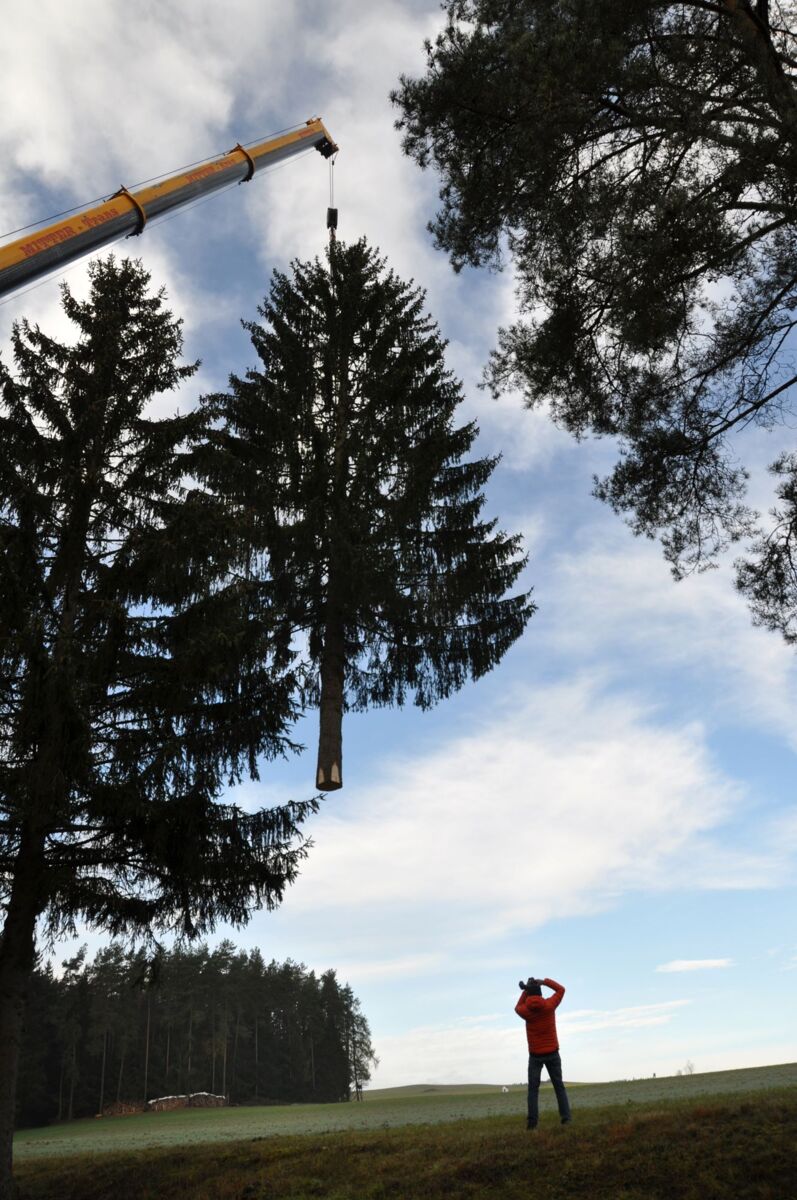 Am heutigen, 8. November, wurde die Fichte aus Freistadt gefällt. Nun wird der Baum für den Transport vorbereitet und am 11. November nach Linz gebracht, wo er um etwa 10.30 Uhr eintrifft und ab den Mittagsstunden auf der Westseite des Hauptplatzes aufgestellt wird.